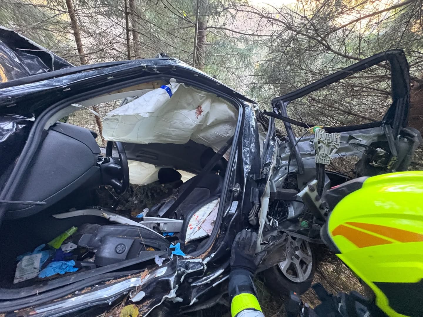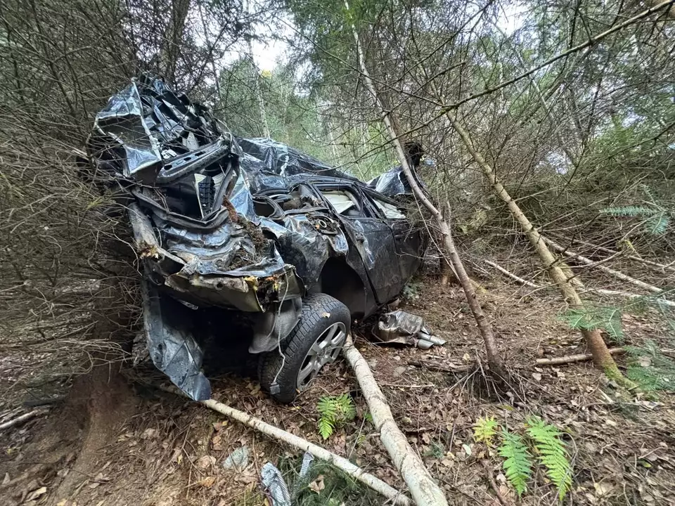 Das Fahrzeug war aus noch ungeklärter Ursache von der Fahrbahn abgekommen und über den Hang in den Wald gestürzt. Die Suche nach dem Wrack gestaltete sich für die Einsatzkräfte äußerst schwierig, da das Gelände steil und stark bewachsen ist.