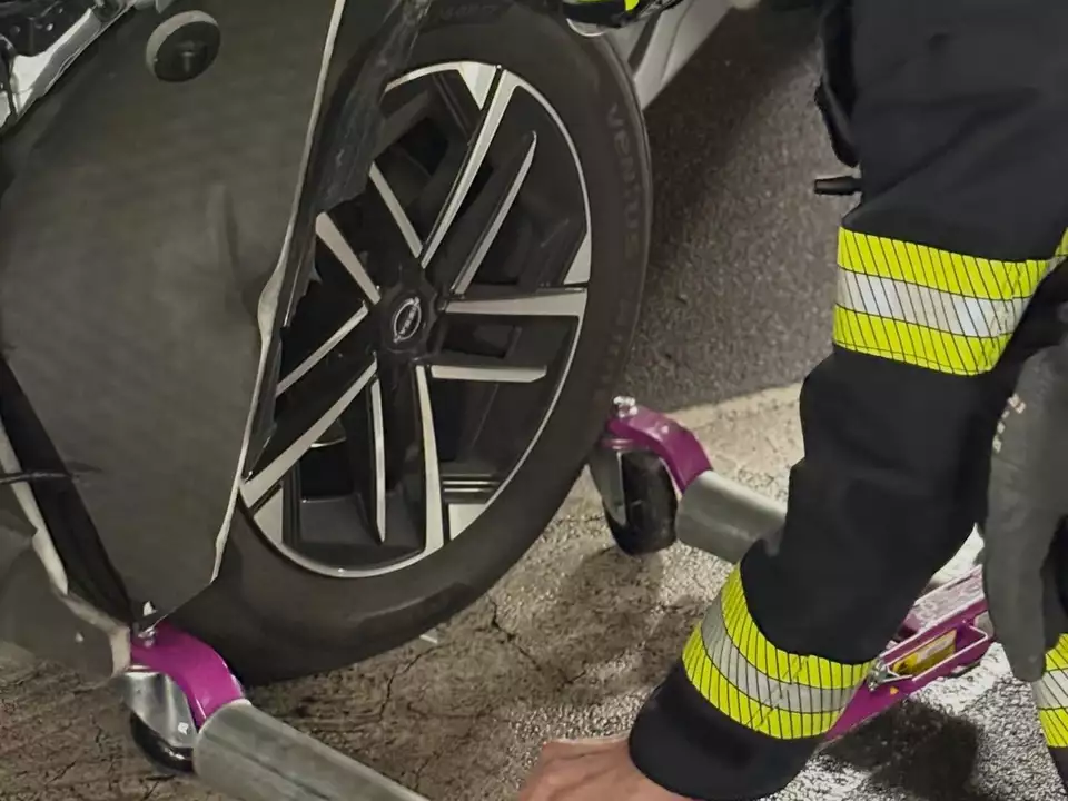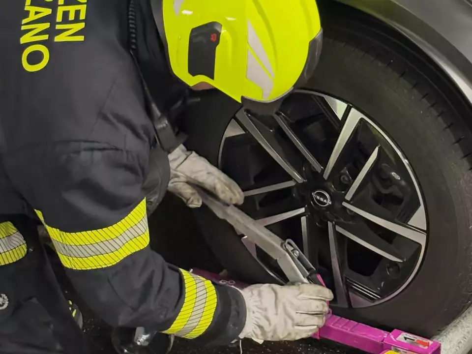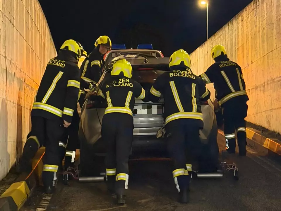 In der Ausfahrtsrampe des Parkhauses Bozen Mitte war ein Personenwagen verunfallt und zwischen der automatischen Schrankenanlage und einer Begrenzungsmauer stecken geblieben.