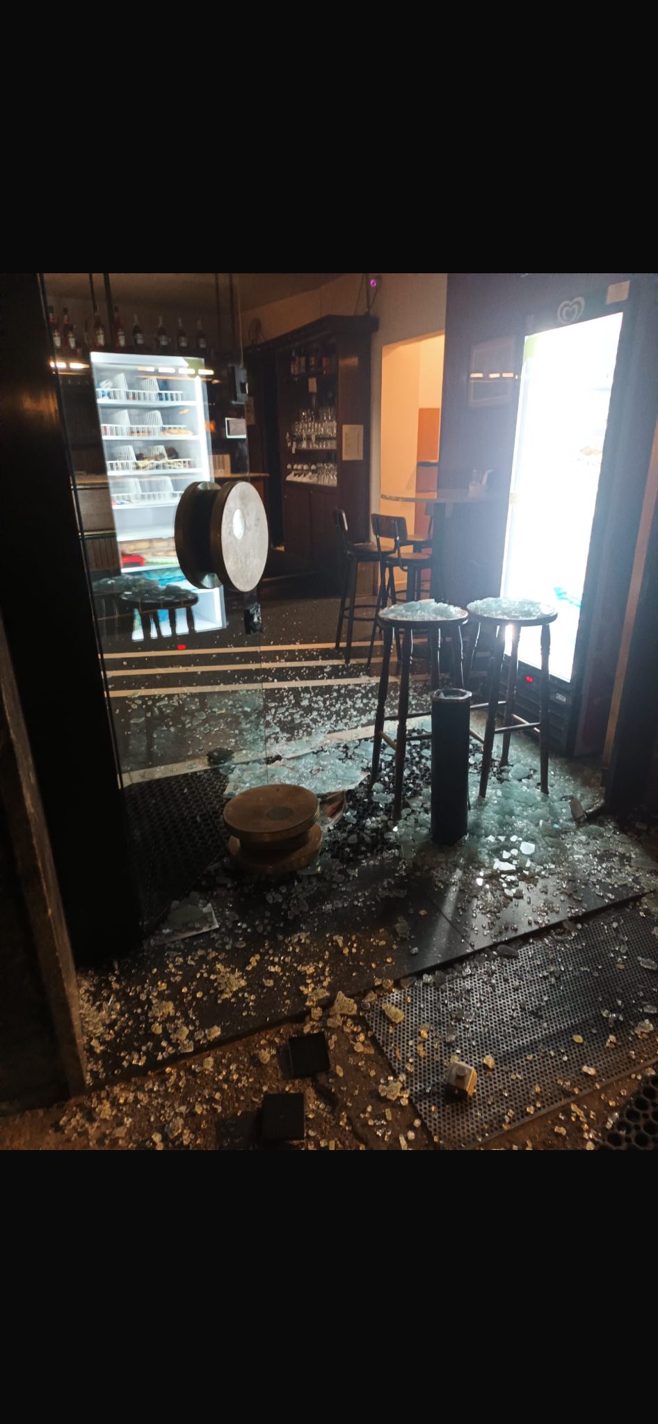Laut Überwachungskameras erfolgte der Einbruch im Morgengrauen. Als eine Mitarbeiterin das Lokal aufsperrte, war das Lokal voller Glassplitter. Der Schaden an der zerstörten Glasscheibe beläuft sich auf über 4.000 Euro, hinzu kommen die Umsatzeinbußen durch den eingeschränkten Betrieb. Das Lokal wurde am Vormittag gereinigt und die beschädigte Front provisorisch mit einer Holzplatte gesichert.