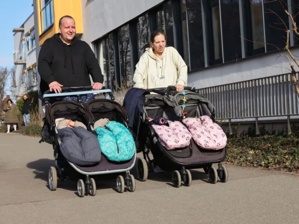 Anfang Juni sollen die beiden Mädchen auf die Welt kommen. Auf Jasmin Schmidt und Andreas Rittner kommt dann einiges zu. Denn die älteren Geschwister sind auch noch ziemlich klein. Die Zwillinge Daniel und Emilio wurden im Spätsommer 2023 geboren, die Zwillinge Simone und Anastacia im Spätsommer 2024. Er rechne mit noch mehr Arbeit, aber auch mit noch mehr Spaß, sagt Rittner. “Es ist auf jeden Fall ein sehr tolles Gefühl.”