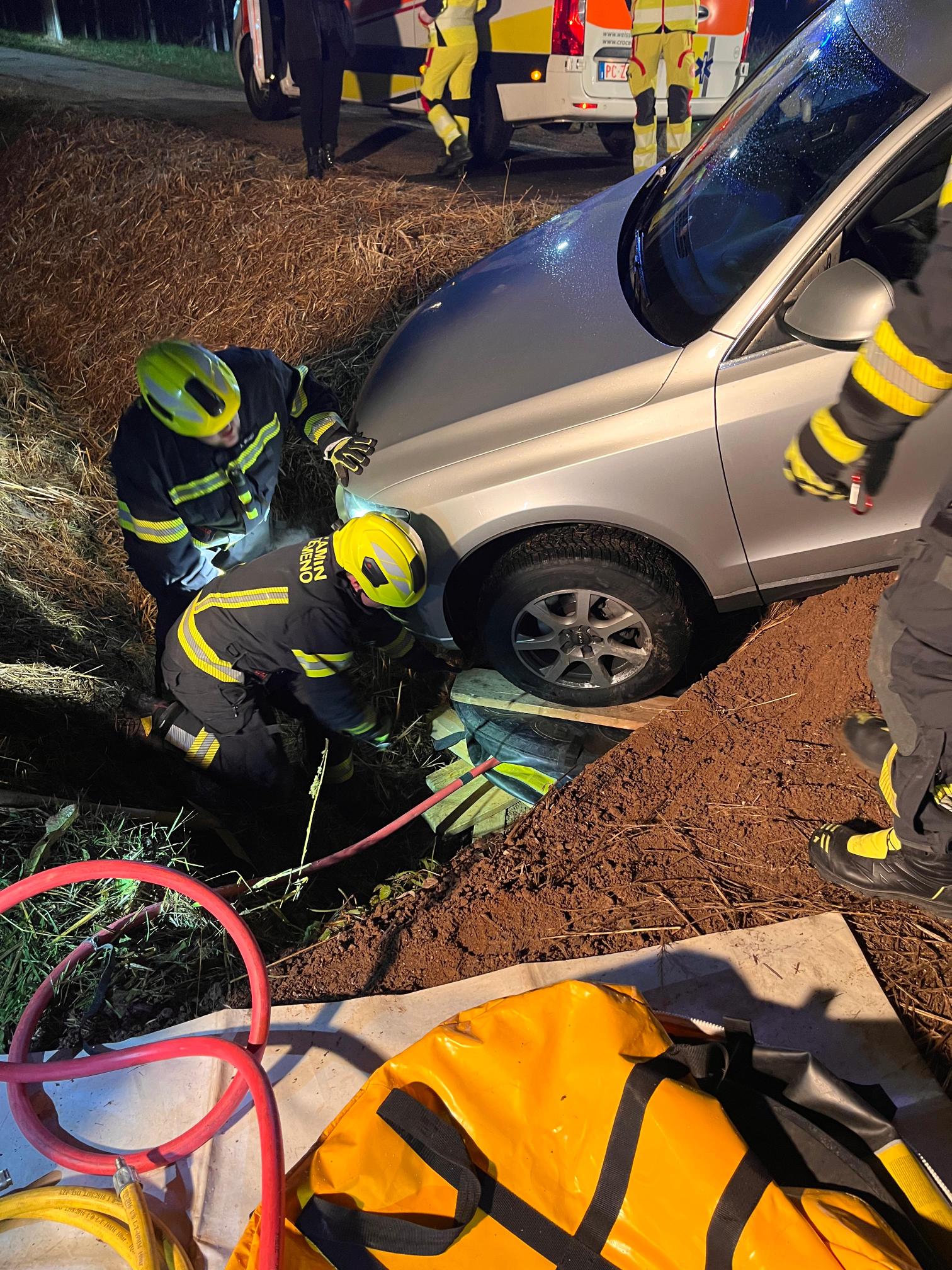 Es wurde festgestellt, dass die Fahrerin glücklicherweise unverletzt war. Im Anschluss erfolgten die Bergungsarbeiten des Fahrzeuges mittels Hebekissen und Seilwinde.