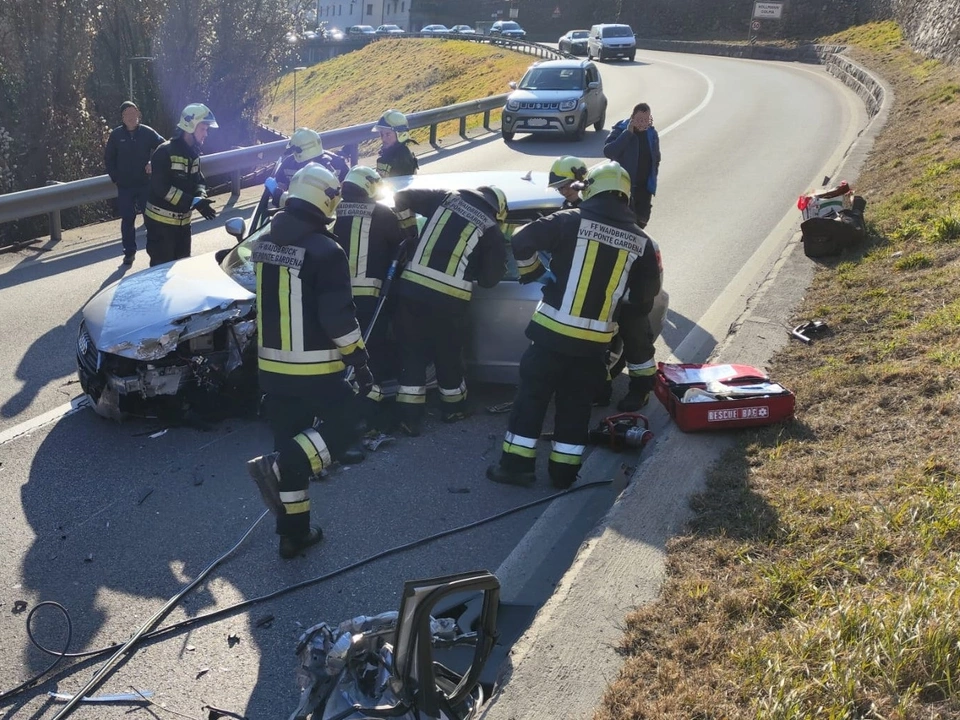 Der Lenker des Pkw wurde dabei im Fahrzeug eingeklemmt und musste von der Feuerwehr mittels hydraulischen Rettungsgeräts befreit werden. Er zog sich mittelschwere Verletzungen zu und wurde nach der Erstversorgung durch den Rettungsdienst in ein Krankenhaus gebracht. Der Fahrer des Lieferwagens blieb unverletzt.
