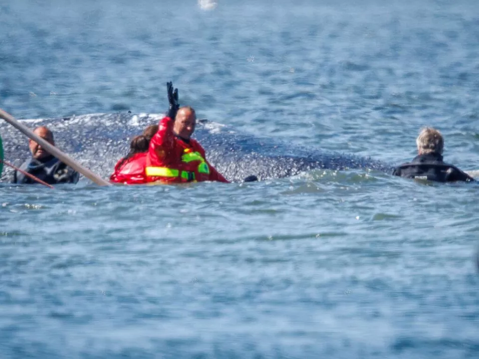“Mir fällt wirklich ein Stein vom Herzen”, sagte Mecklenburg-Vorpommerns Umweltminister Till Backhaus im Hafen von Kirchdorf. “Ich war auch kurz davor, ins Wasser zu springen, um ihm noch auf den letzten Meter mitzuhelfen”. Er habe sich dann aber zusammengerissen. Der Minister gestand, er habe auf dem Schiff, von wo er die Aktion beobachtete, geweint.