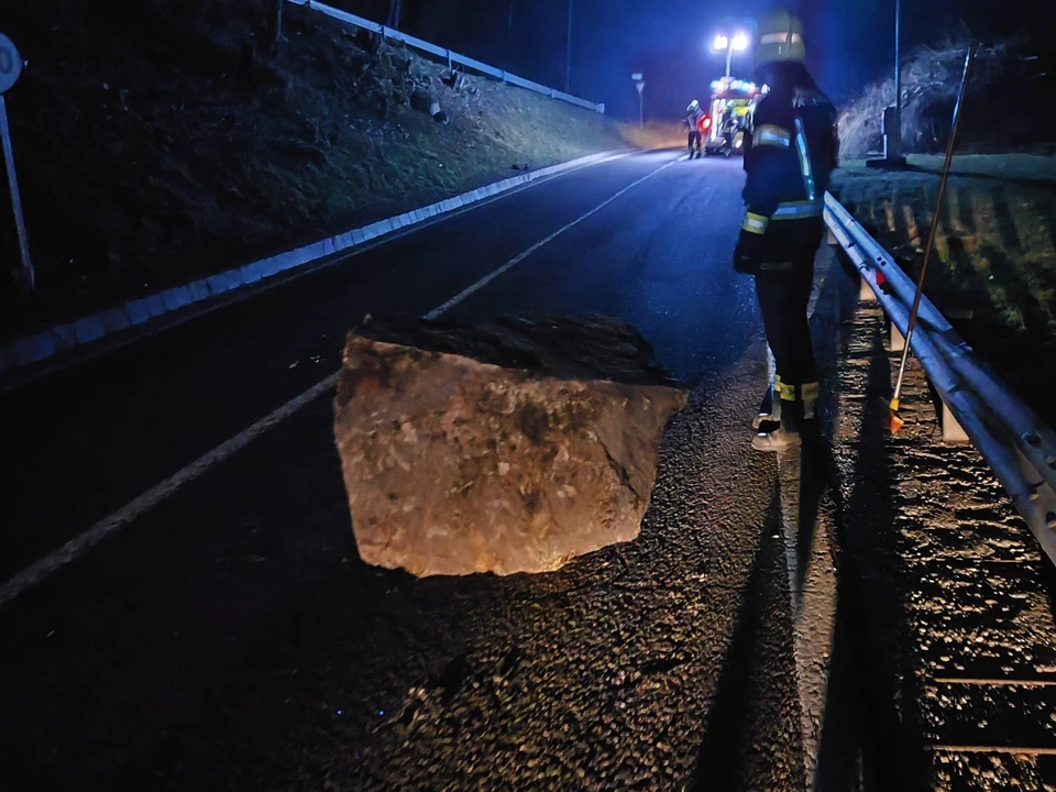 Kubikmeter großer Felsbrock kracht auf Landesstraße