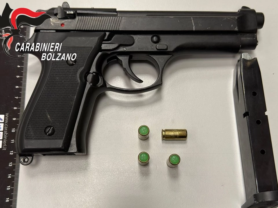 Beim Auftauchen der Einsatzkräfte versuchte der 28-Jährige, eine Pistole zu verstecken. Es handelte sich um eine Schreckschusspistole der Marke Bruni, Modell 92, ohne den vorgeschriebenen roten Sicherheitsverschluss. Die Waffe war mit einem Magazin bestückt, außerdem fanden die Carabinieri vier verschossene Patronenhülsen des Kalibers 9×21 Millimeter.
