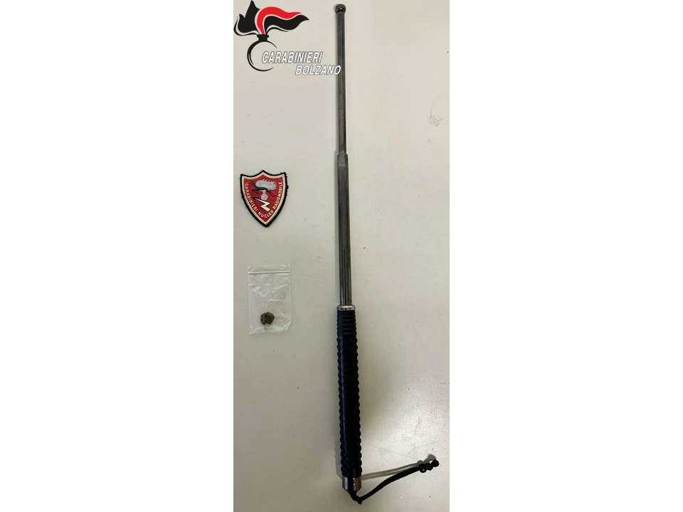 Die Einsatzkräfte stoppten den aus Bozen stammenden Mann und unterzogen ihn einer Kontrolle. Dabei bestätigte sich der Verdacht: Bei der Durchsuchung fanden die Exekutivbeamten einen ausziehbaren Schlagstock aus Metall sowie eine kleine Menge Haschisch.