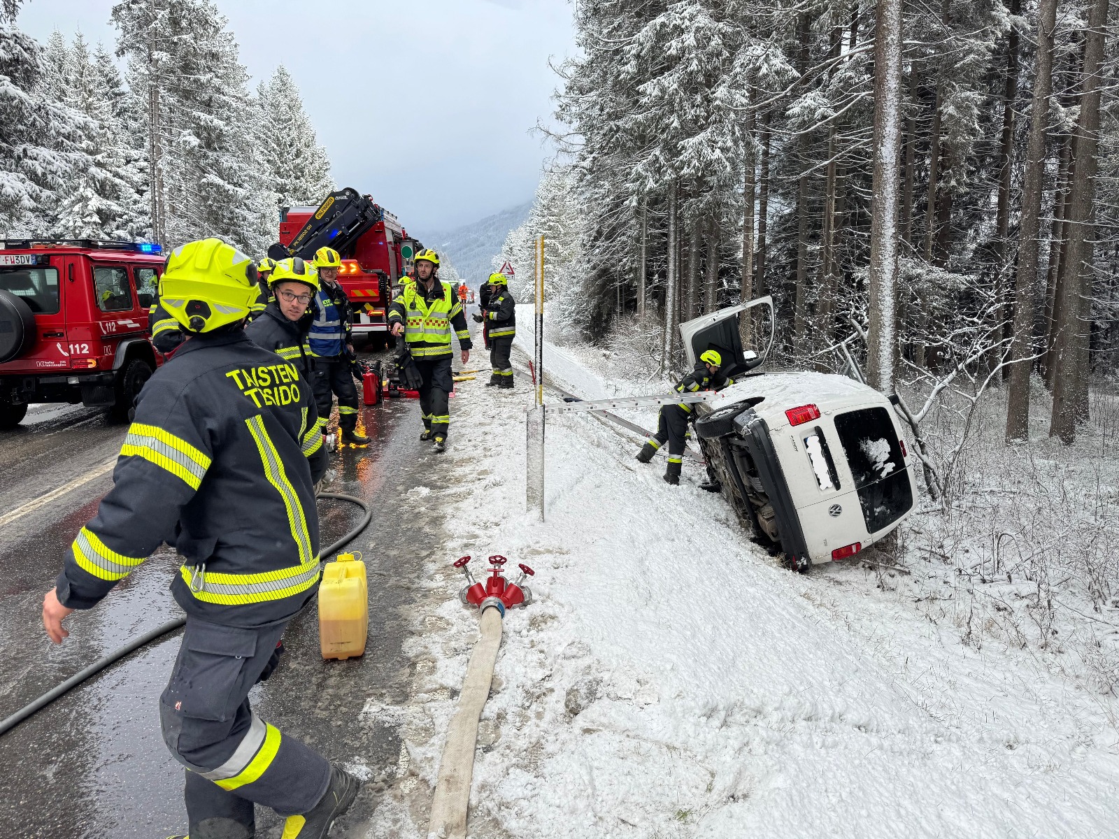 Taisten – Zu einem Verkehrsunfall ist es am Donnerstag gegen 13.00 Uhr in Taisten im Hochpustertal gekommen. Ein Pkw, der von der Straße abgekommen ist, landete in einem Graben und prallte gegen einen Baum. Weil das Fahrzeug seitlich umgekippt ist, konnte sich der Lenker nicht selbst befreien.