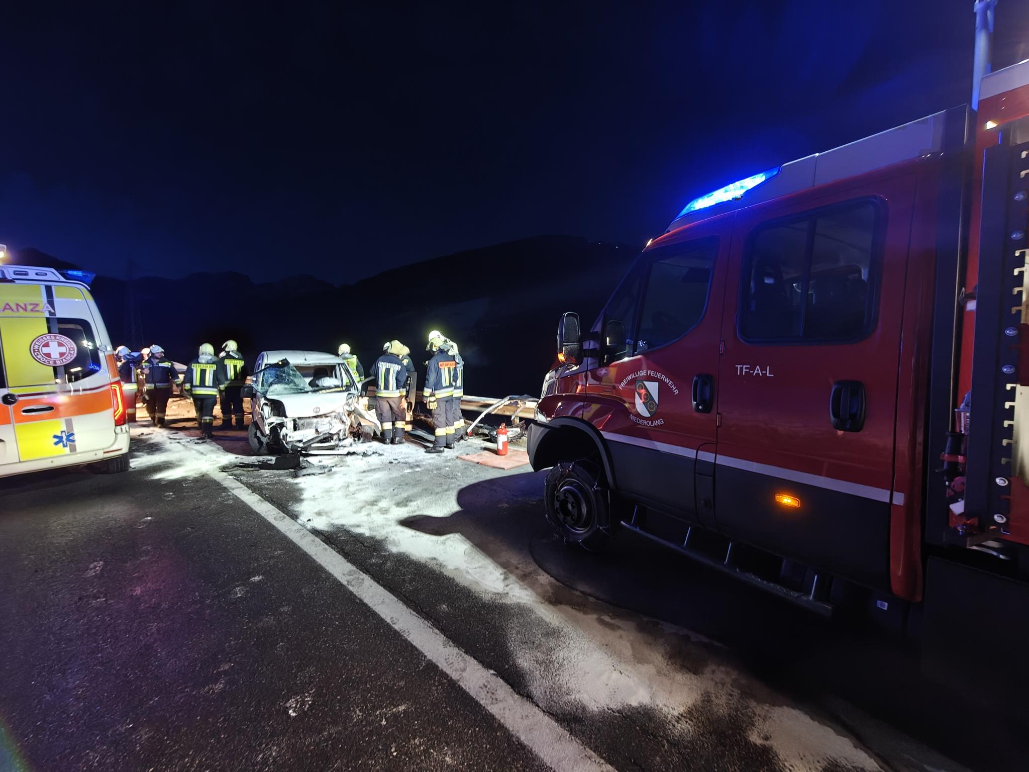 Zunächst hatte es geheißen, dass es sich um einen Verkehrsunfall ohne eingeklemmte Person handelte. Doch am Unfallort stellten die Wehrleute fest, dass die Situation schlimmer als gedacht war. Die Alarmstufe wurde erhöht, eine Person musste mit hydraulischem Rettungsgerät aus dem Fahrzeugwrack befreit werden.