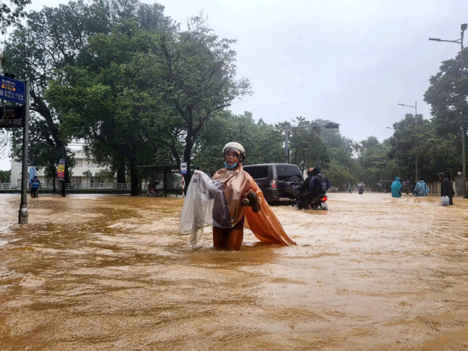 Schulen wurden geschlossen und die ehemalige Kaiserstadt Hue, die zum Weltkulturerbe der Unesco gehört, überflutet. Von Sonntagabend bis Montagabend (Ortszeit) seien binnen 24 Stunden an drei Messstationen in der Stadt Hue jeweils 1.700 Millimeter, 1.100 Millimeter und 1.000 Millimeter Regen gemessen worden – mehr als je zuvor in dem Land. Der bisherige 24-Stunden-Regenrekord lag demnach bei 990 Millimetern und war 1999 in Hue gemessen worden.