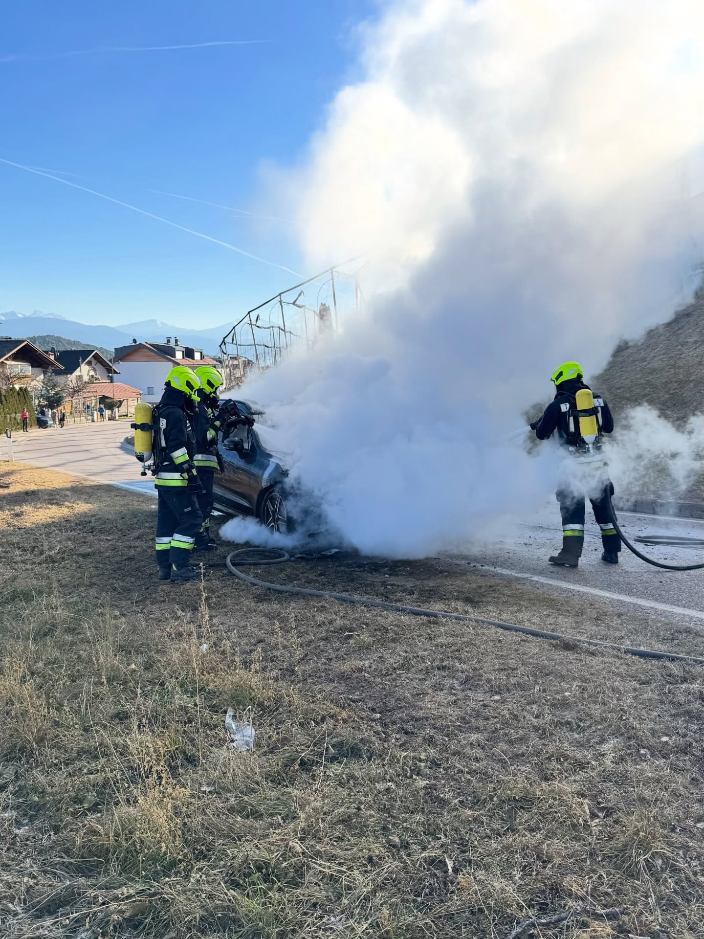 Tisens – Am Neujahrstag wurden die Freiwillige Feuerwehr Tisens und die Berufsfeuerwehr Bozen zu einem Brandeinsatz gerufen. Kurz nach 12.30 Uhr rückten die Wehrleute der Freiwilligen Feuerwehr Tisens aus, nachdem die Meldung eingegangen war, dass auf Höhe der Tisener Gewerbezone ein Fahrzeug in Brand geraten war.