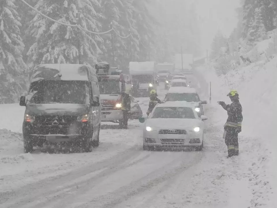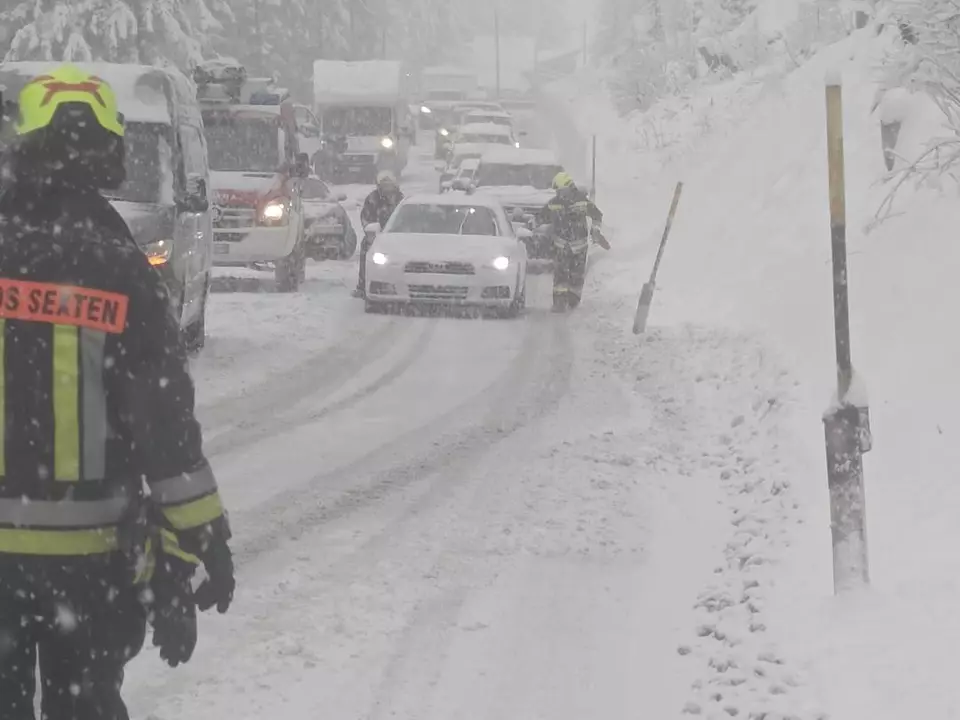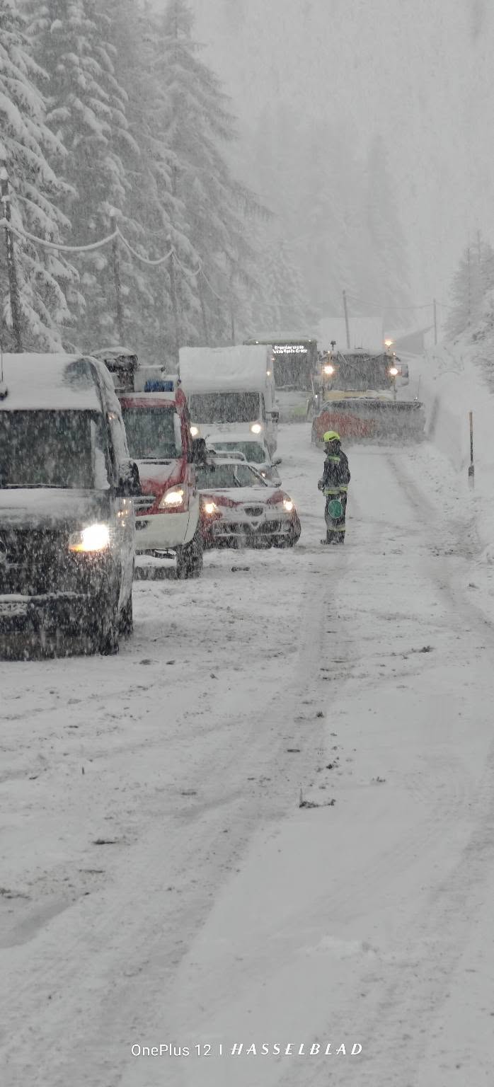 Bereits auf der Anfahrt wurde der Feuerwehr klar, dass sich der Einsatz hinziehen würde. Zahlreiche Fahrzeuge ohne Winterausrüstung, teils sogar mit Sommerreifen, blieben kurz nach dem Dorf in Richtung Kreuzbergpass stecken. Um die Situation unter Kontrolle zu bringen, musste die Straße für rund eineinhalb Stunden vollständig gesperrt werden.