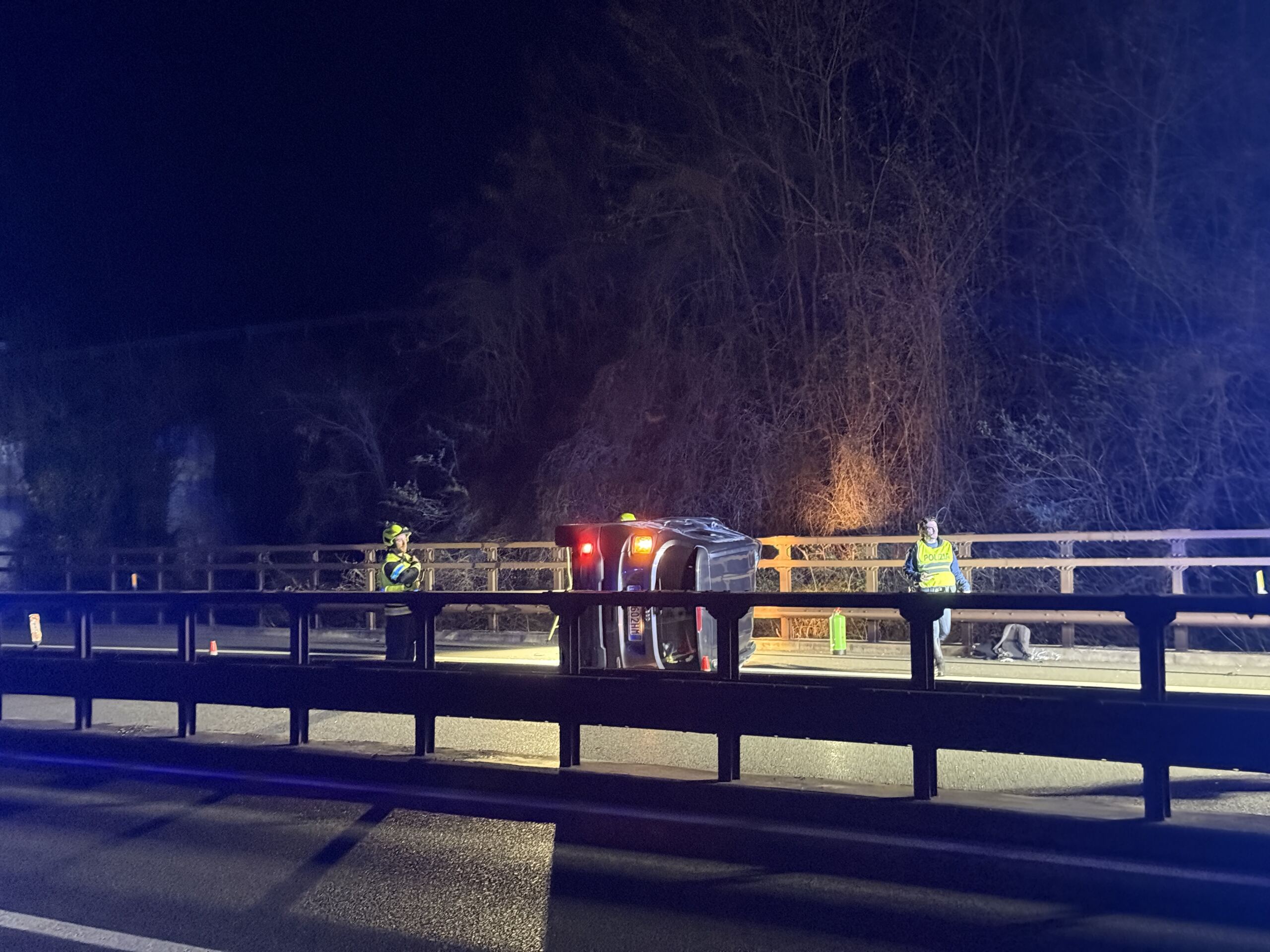 Die Feuerwehr sicherte umgehend die Unfallstelle ab und leuchtete den Bereich aus. Parallel dazu wurden technische Maßnahmen zur Brandschutzsicherung und zur Aufnahme auslaufender Betriebsstoffe eingeleitet. Die Sanitäter des Weißen Kreuzes kümmerten sich um die Erstversorgung der Verletzten, während der Verkehrsdienst der A22 und die Polizei die Unfallaufnahme koordinierten.