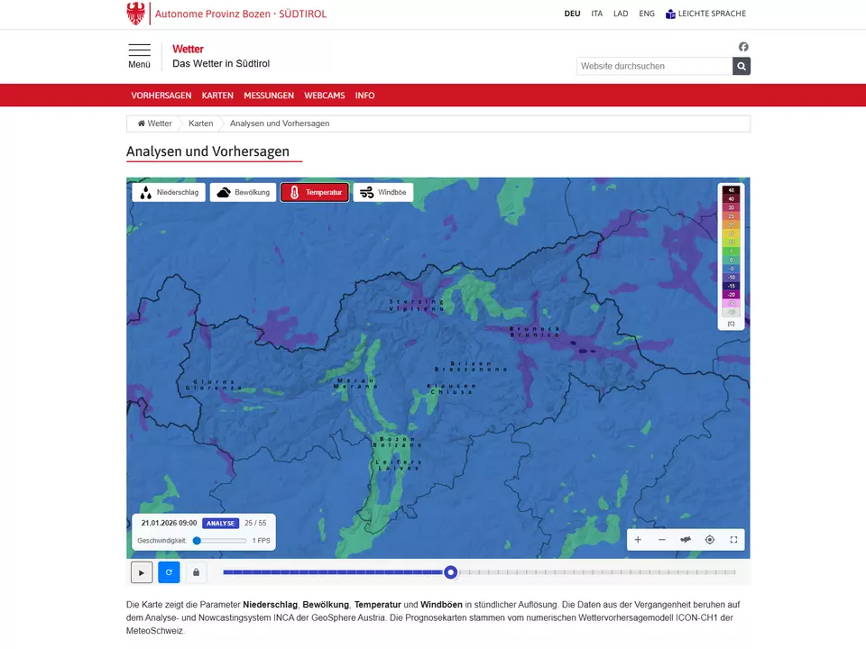 Bozen – Interaktiv und dynamisch: So zeigt sich seit dem 21. Jänner das Wetterportal des Amtes für Meteorologie und Lawinenwarnung wetter.provinz.bz.it. Die Südtiroler Informatik AG SIAG hat in Zusammenarbeit mit dem Amt für Meteorologie und Lawinenwarnung die Wetterseite grundlegend überarbeitet. Die Zahl der Zugriffe auf das Landeswebportal mit Wetter ist mit Abstand die höchste: Über 70 Millionen Mal wurde die Wetterseite im vergangenen Jahr aufgerufen, nahezu 30 Millionen Besuche wurden gezählt.