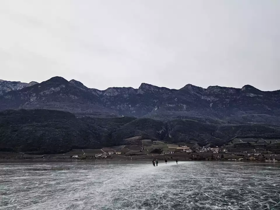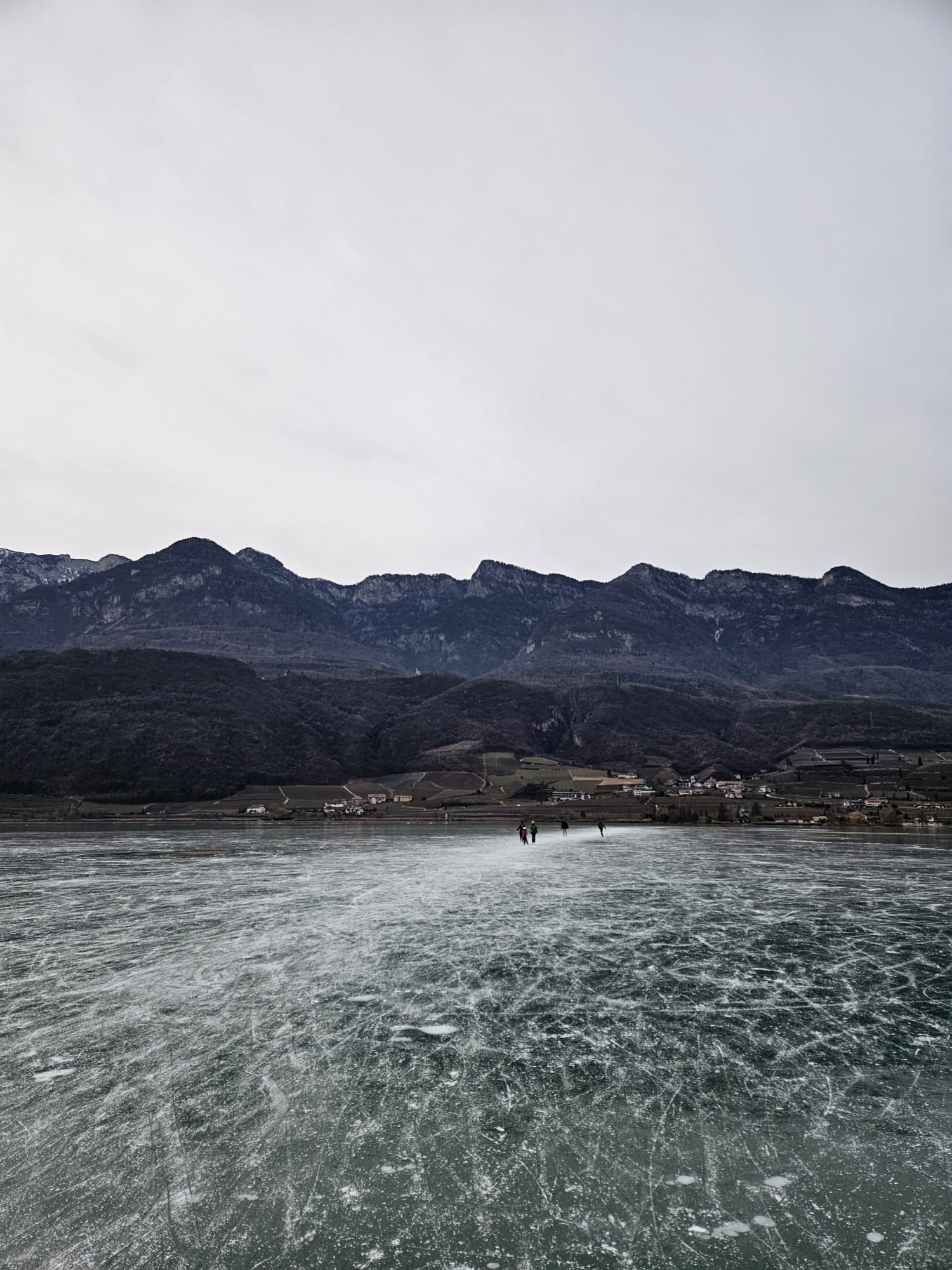 Der Kalterer See ist heuer in mehreren Phasen gefroren, bereits seit Ende Dezember im Süden deshalb ist hier die Eisdicke am größten. Weiter im Norden windbedingt erst vor wenigen Tagen mit dadurch geringerer Dicke. Vorsicht bei nicht gefrorenen Stellen. #BetretenAufEigeneGefahr pic.twitter.com/CNPcJddjgk