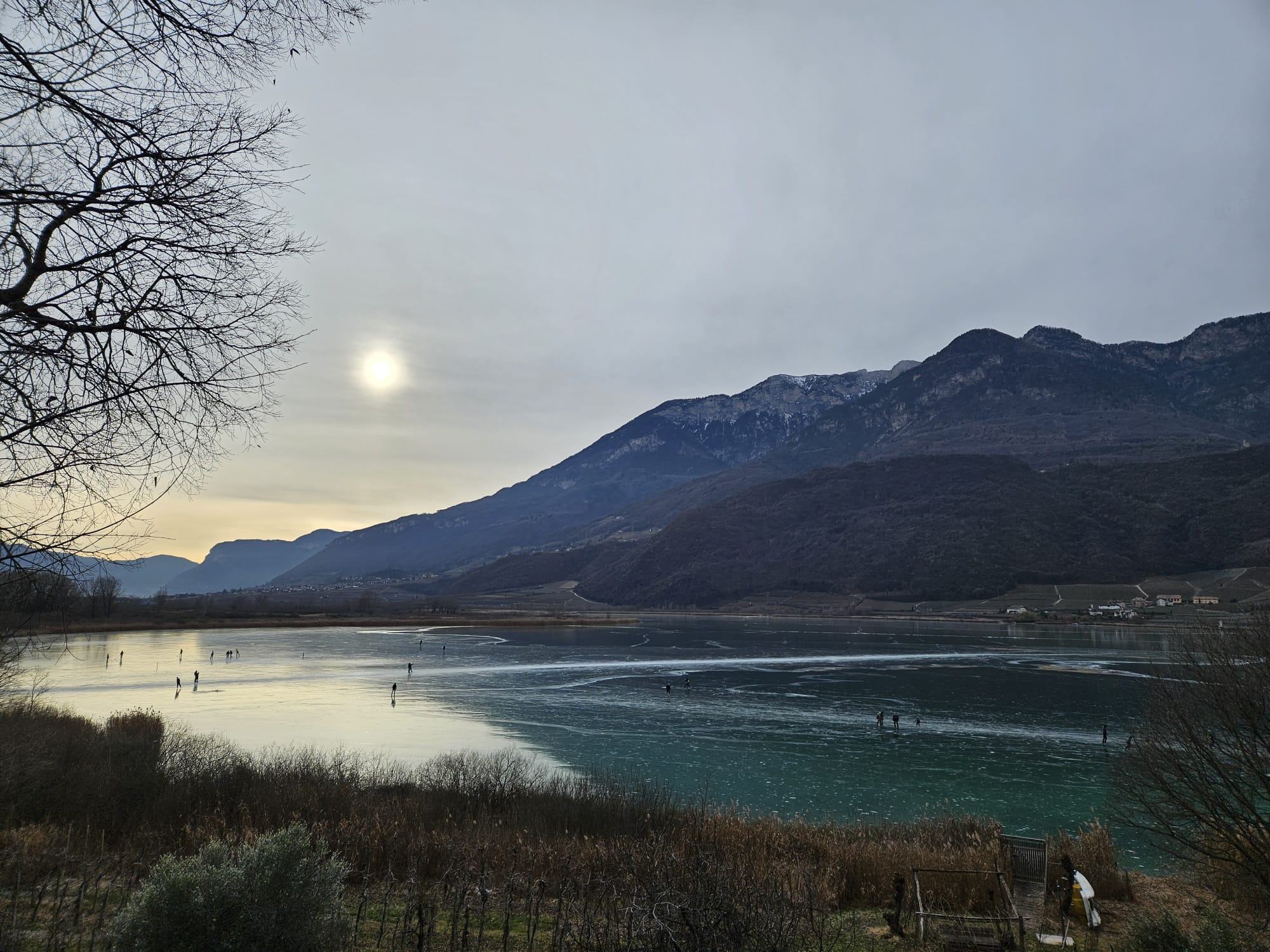 Kaltern – Der Kalterer See zeigt sich derzeit von seiner winterlichen Seite: Seit einigen Tagen ist die Wasseroberfläche größtenteils zugefroren. Erste Schlittschuhläufer haben sich bereits Anfang der Woche aufs Eis gewagt. Mittlerweile sind ihnen viele gefolgt.