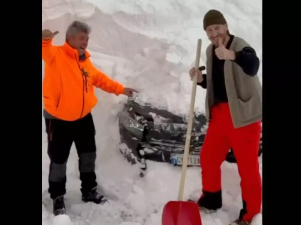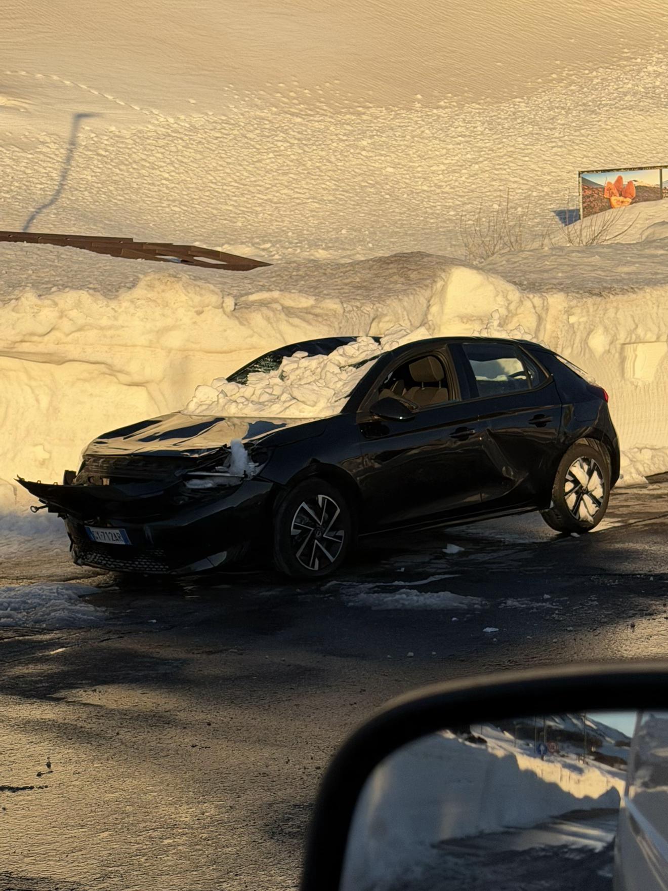 Bei dem Fahrzeug handelt es sich um das Mietauto zweier Schweizer Touristen, die das Fahrzeug mitten im Schneesturm zurückließen und sich mit einem vierjährigen Kind zu Fuß auf den Weg machten. Nach mehreren Stunden und bei weiterhin starkem Schneefall konnten sie schließlich vom Bergrettungsdienst gerettet und in Sicherheit gebracht werden. Das Auto musste allerdings zurückgelassen werden. So kam es zu diesem spektakulärem Ergebnis.