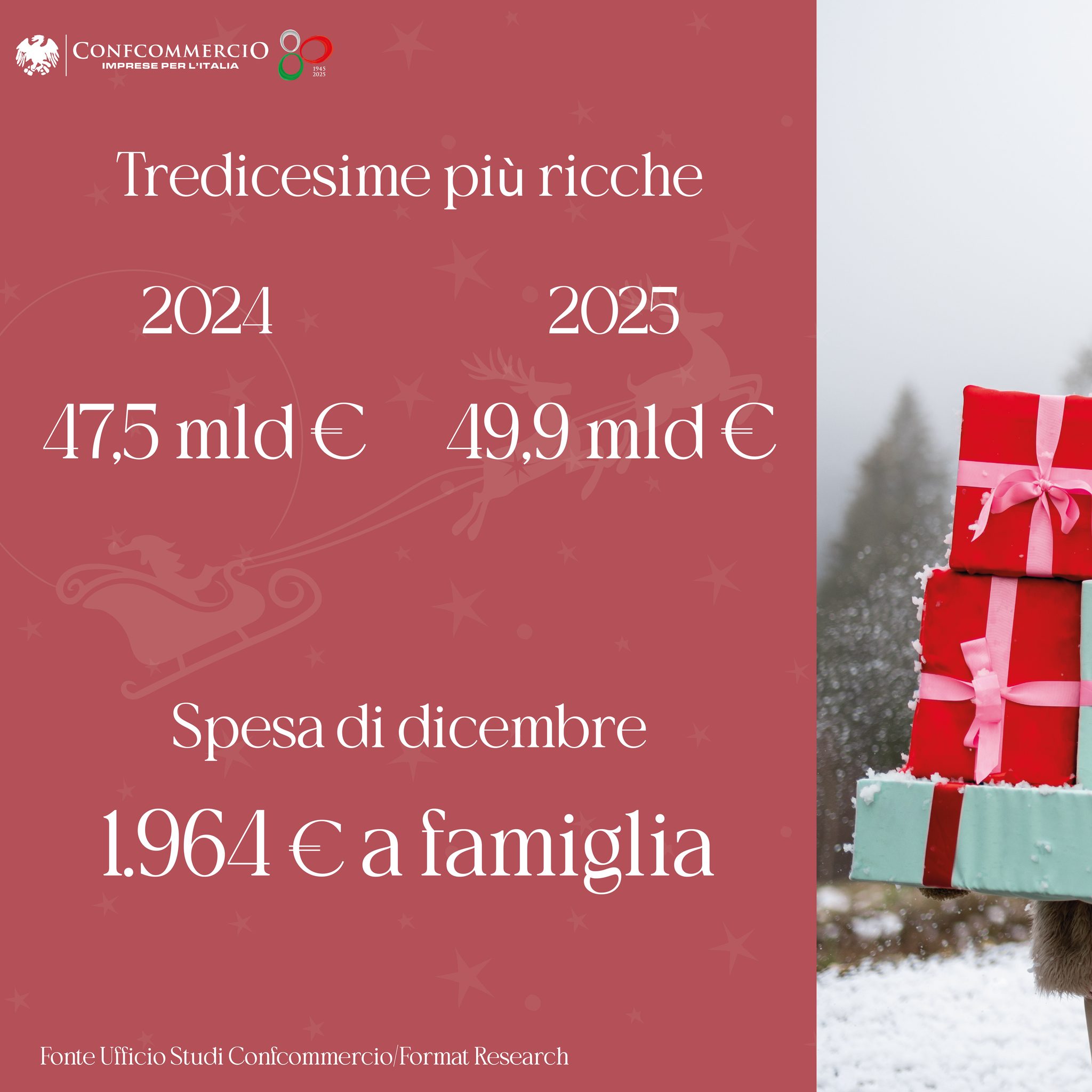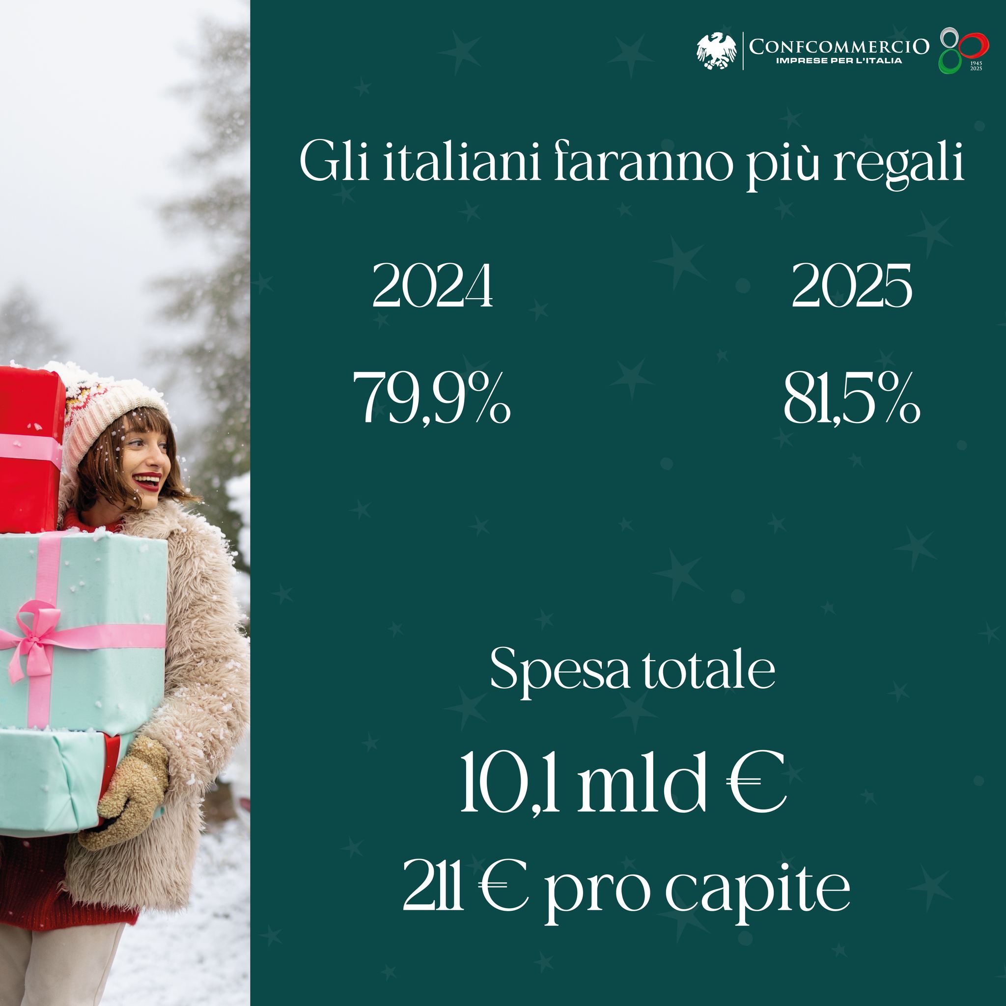 Der italienische Handelsverband Confcommercio geht davon aus, dass die Gesamtausgaben der Italiener für Geschenke und Festessen in diesem Jahr 50 Milliarden Euro erreichen werden. Diese Annahme wird durch das Zusammenwirken von „mäßiger Inflation, höherer Beschäftigung und höherem verfügbaren Einkommen” gestützt. Es handelt sich um ein Umfeld, das es den Familien ermöglicht, den kommenden Feiertagen mit einem seit Jahren nicht mehr dagewesenen Vertrauen entgegenzusehen. Die Erholung der Kaufkraft festigt nach Jahren „magerer Festtage” eine langsame, aber stetige Normalisierung des Konsums.