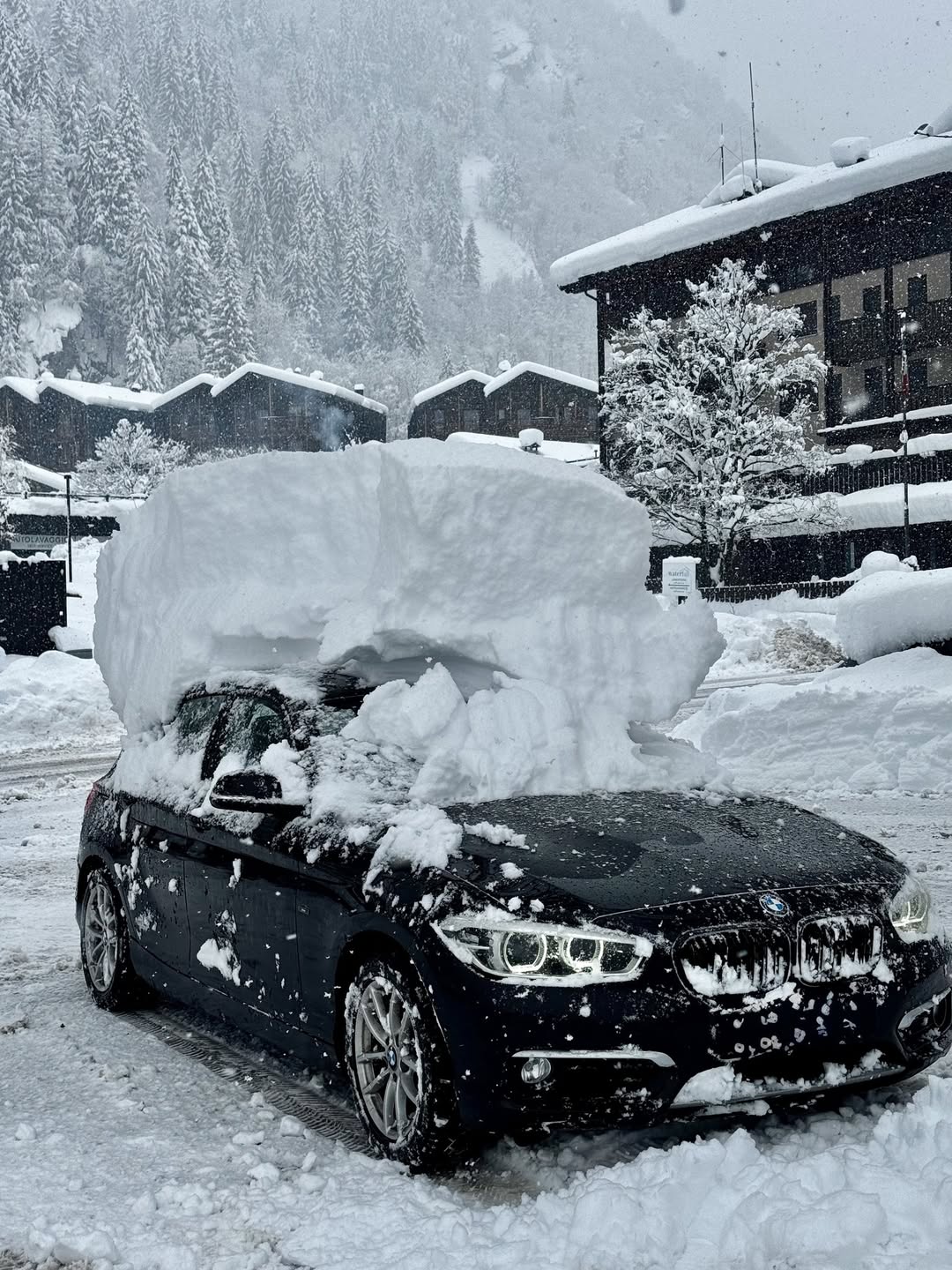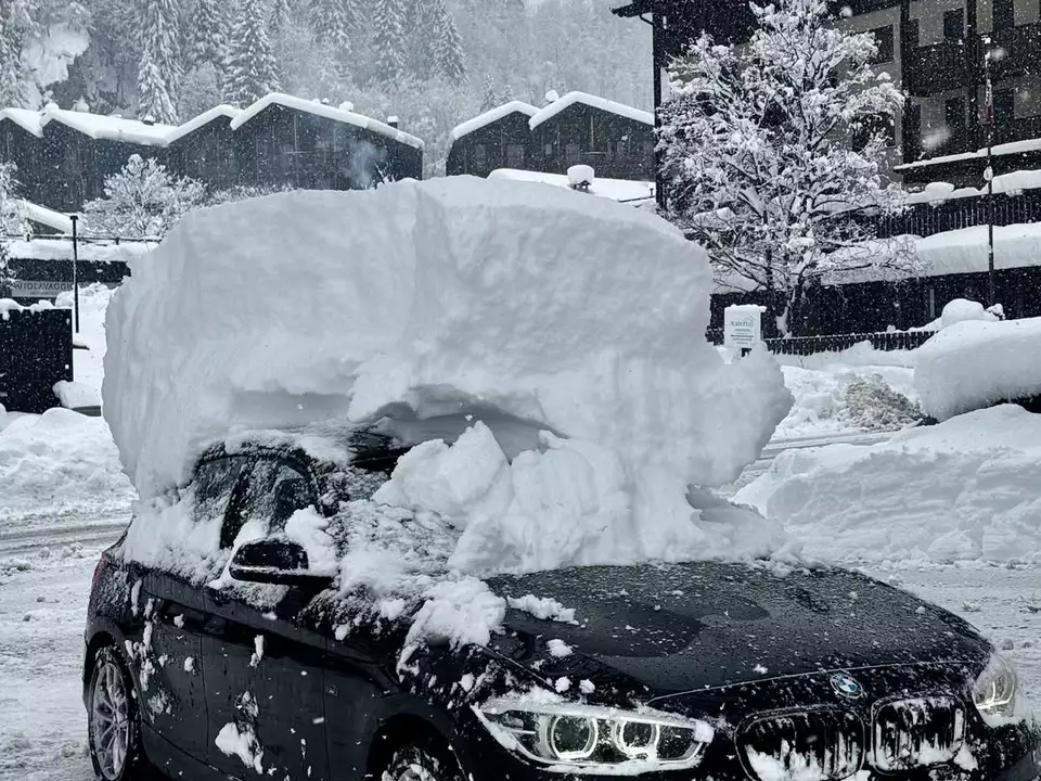 Doch auch in anderen Orten im westlichen Alpenbogen fiel Mitte März noch eine gewaltige Schneemenge. Aus Champoluc im Aostatal stammt dieses Foto eines teilweise freigelegten Autos. Es muss fast vollständig von der Schneedecke verschluckt worden sein, denn auch hier kam rund ein Meter Neuschnee herunter.