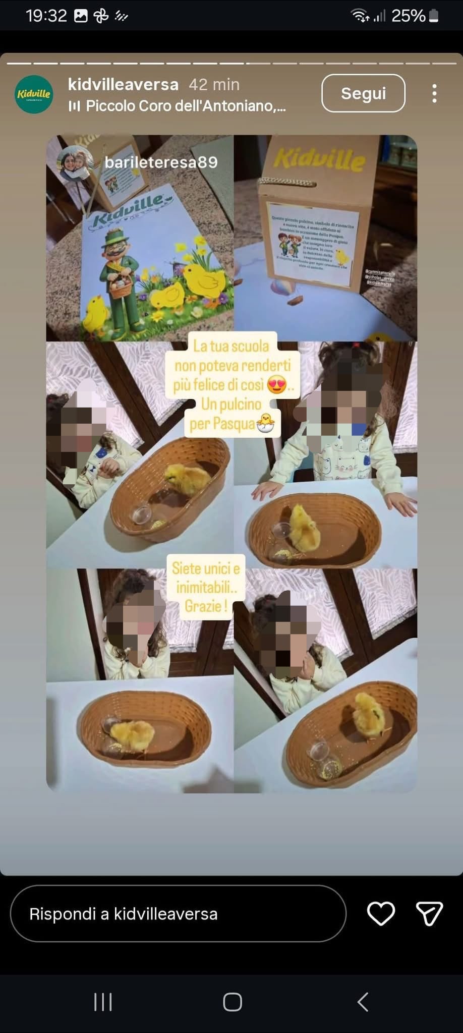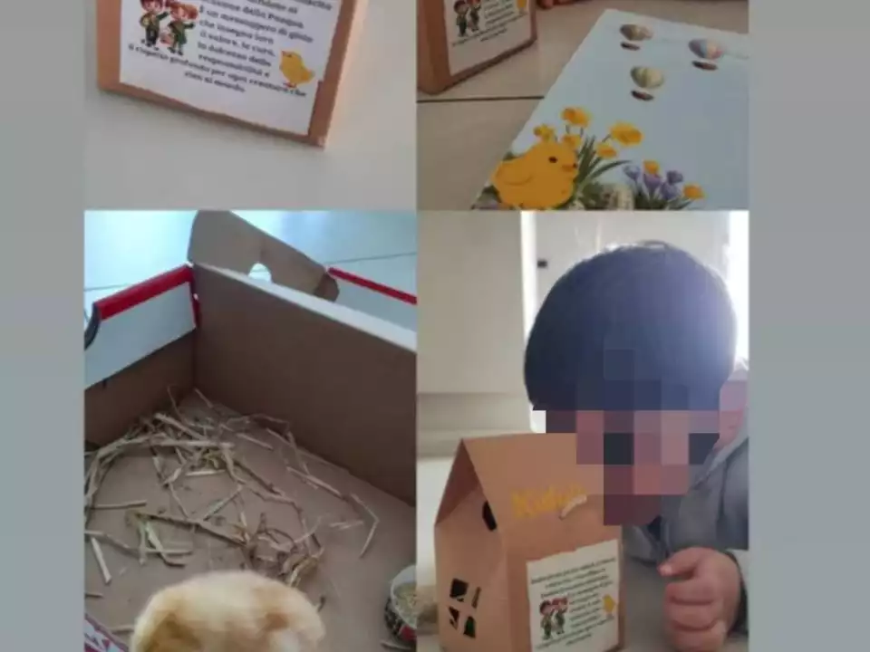 Den Kindern wurden sie in die Hände gedrückt. Sie waren in kleine Schachteln eingepackt, die mit Stroh, Schriftzügen und Aufklebern verziert waren. Verpackt, als wären es Gegenstände. Anlässlich des Osterfestes verschenkten private Kinderhorte über sechzig lebende Küken an ihre Schüler. Dies geschah in Kampanien an den verschiedenen Standorten der Schule, die über die Provinzen Neapel und Caserta verteilt sind.