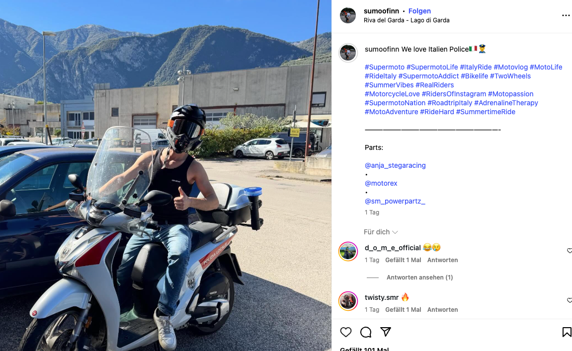 Auf dem Profil fanden sich zudem zahlreiche Clips, die gefährliche Fahrmanöver, Wheelies und Fahrten im Gegenverkehrsbereich zeigen. Die Clips wurden auf den Straßen rund um den Gardasee aufgezeichnet.