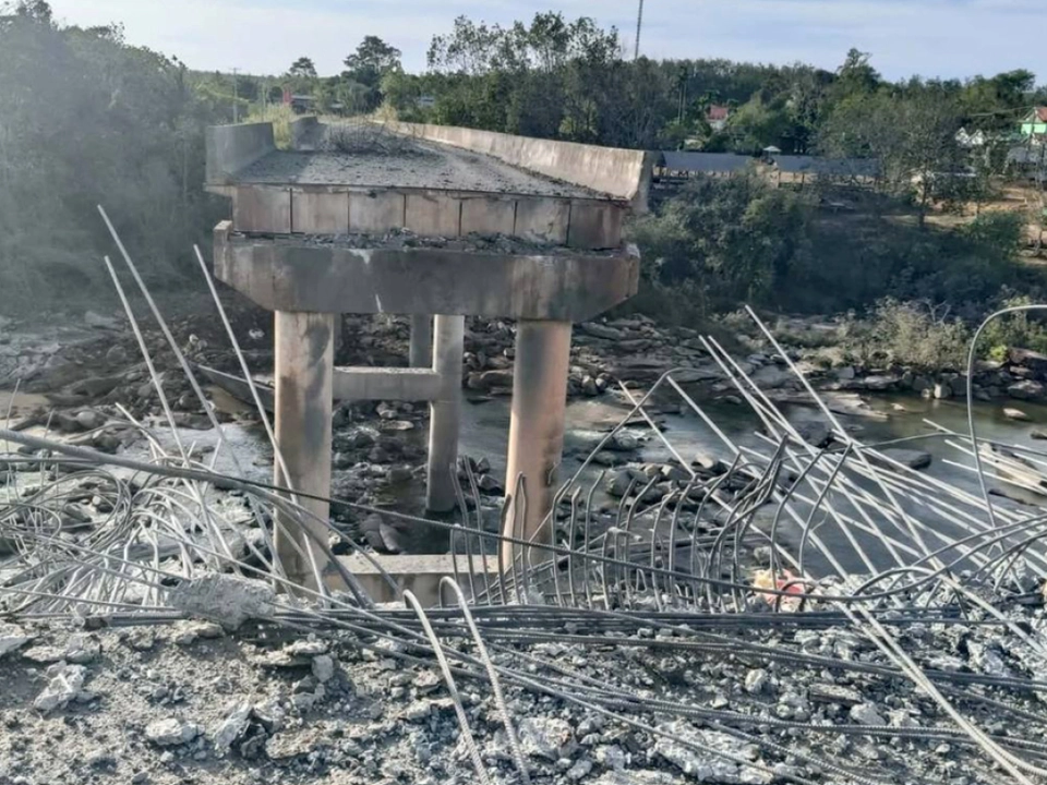 Zerstörte Brücke nach einem thailändischen Luftangriff nahe der Grenze