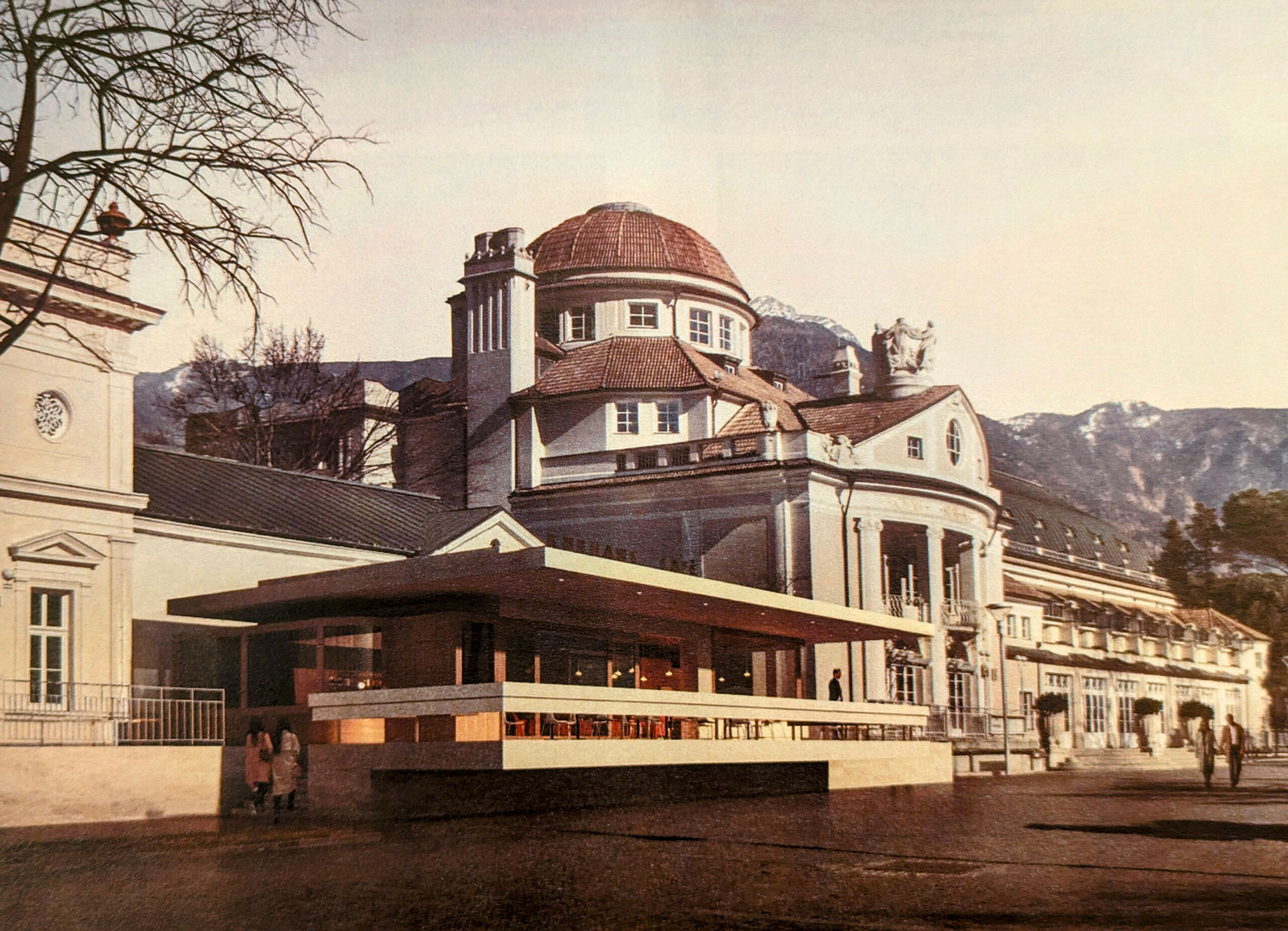 Meran – Die Terrassenanlage vor dem Kurhaus in Meran auf der Passerseite bedarf einer Neugestaltung. Seit Jahren liegt ein Projekt in der Schublade. Die Arbeiten wurden aber aus diversen Gründen nicht angegangen. Nun hat die Gemeinde Entscheidungsdruck. Es ist klar, dass die Sanierung durchgeführt werden muss, gleichzeitig sind die Arbeiten heikel, da man immerhin an einem der ikonischsten Gebäude der Passerstadt Hand anlegt und architektonisch alles stimmig bleiben sollte.