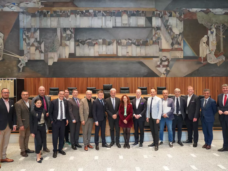 Am heutigen Mittwochvormittag wurde die Gruppe unter der Leitung der beiden stellvertretenden Vorsitzenden André Stolz und Jürgen Frömmrich von Landtagspräsident Arnold Schuler im Südtiroler Landtag in Bozen empfangen. Nach einer kurzen Einführung in die Besonderheiten des Landesparlaments und die politischen Möglichkeiten aufgrund der Autonomie des Landes unterstrich Schuler mit Blick auf aktuelle Konflikte wie den Ukrainekrieg oder den Krieg in Israel und Gaza: „Südtirol ist heute ein Beispiel dafür, wie ein Konflikt zwischen Volksgruppen dauerhaft gelöst werden kann.“ Der Landtagspräsident verwies aber auch darauf, dass dazu einiges nötig war.