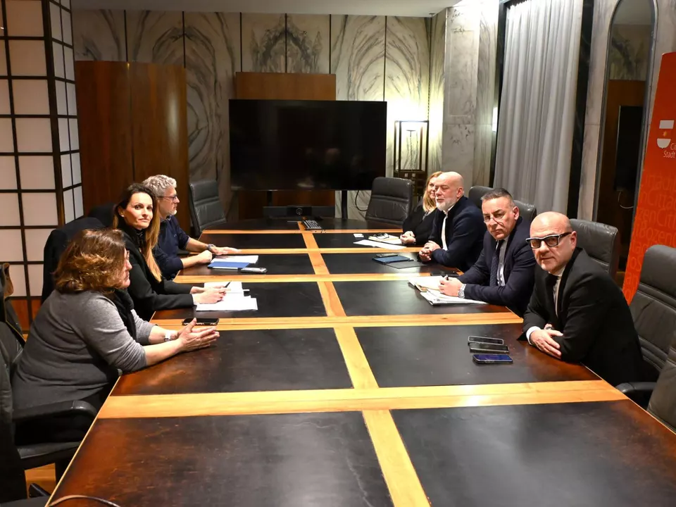 Bozen – Im Rathaus hat am Nachmittag ein Arbeitstreffen zwischen der Stadt Bozen und dem Wohnbauinstitut IPES stattgefunden. Thema waren die Raumplanung und der öffentliche Wohnbau. An dem Treffen nahmen Bürgermeister Claudio Corrarati, Vizebürgermeister und Urbanistikreferent Stephan Konder, IPES-Präsidentin Francesca Tosolini, die Direktorin der Abteilung Wohnungswesen und Mietangelegenheiten Barbara Tschenett sowie der technische Direktor Dietmar Hafner teil. Für die Stadt Bozen waren außerdem der Direktor der Abteilung Raumplanung und Gebietsentwicklung, Architekt Paolo Bellenzier, sowie die Leiterin des Amtes für Raumplanung, Architektin Alessandra Montel, anwesend.