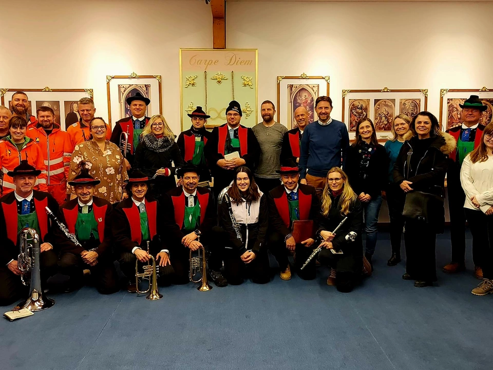 Als “Beweis” liefert Christanell auch ein Foto vom letzten Jahr mit, das ihn gemeinsam mit der Musikkapelle zu Neujahr weder mit Trikolore-Schleife noch mit Bürgermeisterkette zeigt.