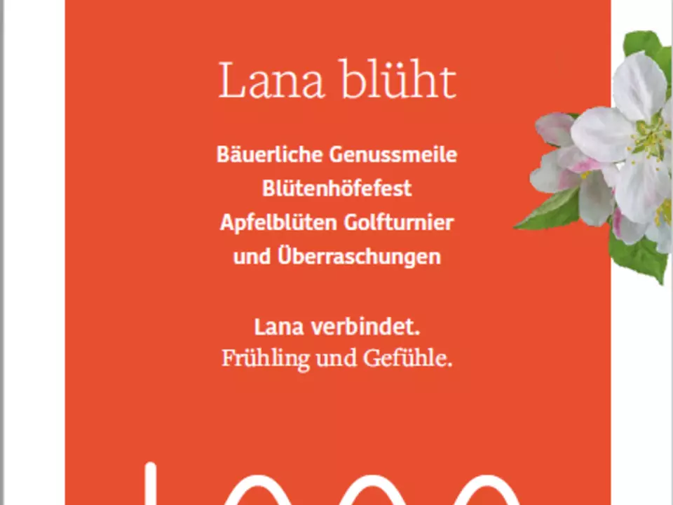 Vom 1. bis zum 30. April 2026 lädt die Region Lana erneut dazu ein, das Erwachen der Natur im Frühling zu feiern. Die eventreiche Veranstaltungsreihe „Lana blüht“ gibt Blüten und Wildkräutern die Möglichkeit, sich auf vielfältige Weise dem Publikum zu präsentieren: Frühlings- Highlights, kreative Workshops, kulinarische Entdeckungen, Wildkräuterwanderungen und vieles mehr erwarten die Besucher. Den Auftakt des Events markiert das „Apfelblüten Golfturnier“ am Samstag, 11. April, mit Abschlag und frühlingshaftem Menü direkt auf dem Green.