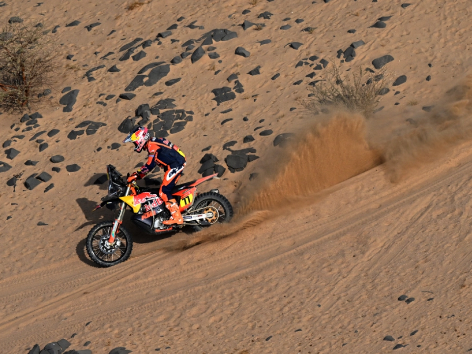 “Es ist nur noch ein Tag übrig, an dem wirklich gepusht werden kann. Ich habe mir eine kleine Strategie zurechtgelegt und hoffentlich zahlt es sich morgen aus”, meinte Brabec. Den Tagessieg sicherte sich der Amerikaner Skyler Howes auf Honda 21 Sekunden vor seinem Markenkollegen Adrien van Beveren (FRA). Benavides wurde Vierter, Brabec Sechster. KTM-Fahrer Daniel Sanders biss nach seinem Schlüsselbeinbruch am Vortag die Zähne zusammen und beendete die Etappe als 13.