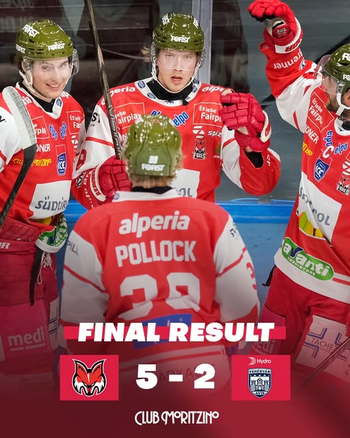 Beide Teams standen innerhalb von 24 Stunden zum zweiten Mal auf dem Eis. Während Bozen aus beiden Begegnungen das Punktemaximum holte, beendete Fehérvár die Auswärtsreise ohne Zähler. Bereits nach 91 Sekunden brachte Pollock die Hausherren in Führung. Gildon, der ligaweit die Plus/Minus-Wertung anführt, erhöhte wenig später mit einer Einzelaktion auf 2:0, ehe Schneider noch vor der ersten Drittelpause das 3:0 erzielte. Zwar verkürzten die Gäste im zweiten Drittel durch Mihály, doch Misley stellte den Drei-Tore-Vorsprung umgehend wieder her. Mit seinem zweiten Treffer sorgte Gildon in der 49. Minute für die endgültige Entscheidung. Am Ende bejubelte Bozen einen 5:2-Erfolg und den Sprung auf Rang drei. Fehérvár liegt nur noch einen Punkt vor dem Lokalrivalen Budapest auf Platz zehn.