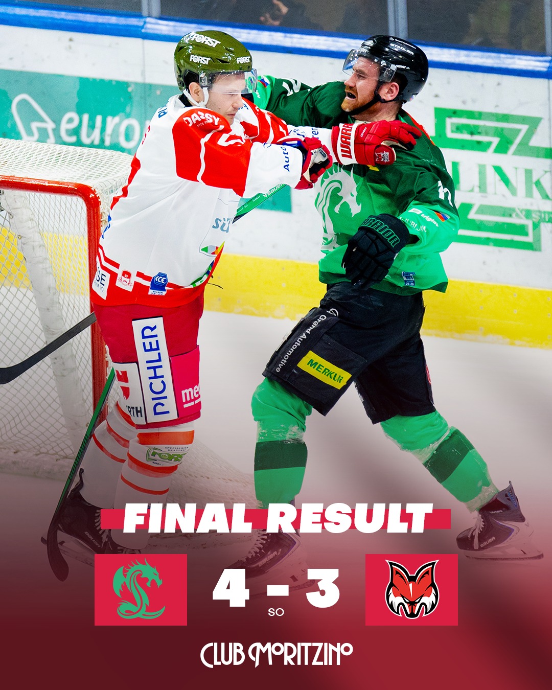 Bozen – Hart umkämpftes Spiel in der Hala Tivoli für den HCB Südtirol Alperia, der zweimal einen Vorsprung aus der Hand gibt und anschließend selbst einem Rückstand hinterherlaufen muss, ehe er in den letzten Sekunden des dritten Drittels ausgleicht. Am Ende geht der Sieg jedoch an den HK Olimpija, der sich dank des verwandelten Penaltys von Mahkovec mit 4:3 nach Penaltyschießen durchsetzt. Die Foxes halten die Slowenen in der Tabelle dennoch auf Distanz, die aufgrund des direkten Vergleichs die Weiß-Roten nicht mehr einholen können. Gleichzeitig rückt jedoch der dritte Platz von Salzburg in weitere Ferne. Am Freitag geht es weiter mit dem Heimspiel gegen den EC KAC (19:45 Uhr), ehe die Regular Season am Sonntag auswärts in Vorarlberg abgeschlossen wird.