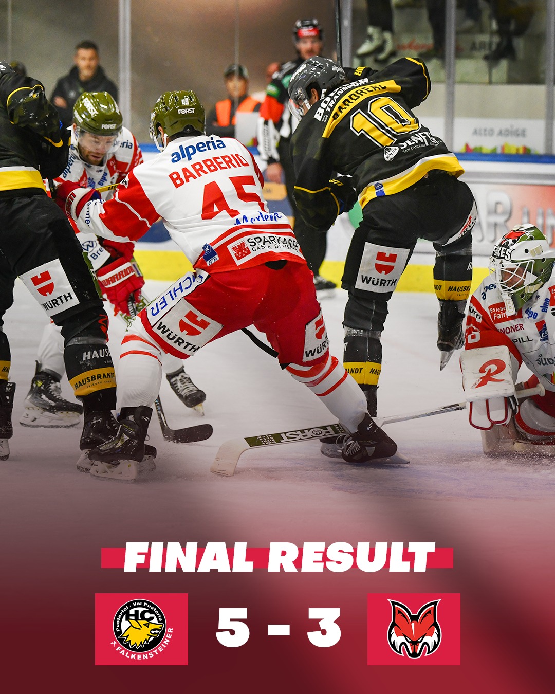 HC Falkensteiner Pustertal – HCB Südtirol Alperia 5 – 3 [0-2; 2-0; 3-1]