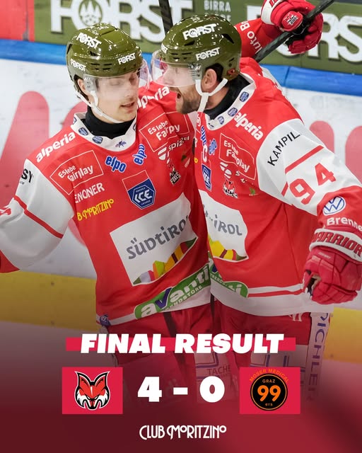 Im zweiten Drittel standen die Torhüter im Fokus und ließen keine Treffer zu. Erst als Graz mehr Risiko nahm, sorgten Matteo Gennaro (46:58) und wenig später Luca Frigo (47:50) für die endgültige Entscheidung. Die Graz99ers mussten sich schließlich mit 0:4 geschlagen geben, liegen aber weiterhin auf dem zweiten Tabellenplatz.