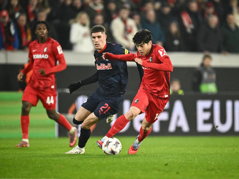 Der sechste Saison-Auftritt in der Fußball-Europa-League hat Salzburg die fünfte Niederlage beschert. Am Donnerstag mussten sich die nach Rot für Petar Ratkov rund eine Stunde in Unterzahl agierenden Bullen beim favorisierten SC Freiburg mit 0:1 (0:0) geschlagengeben und haben nur noch theoretische Chancen auf das Play-off der Top 24. Derzeit fehlen vier Punkte auf den “Strich”, im Jänner warten noch Duelle mit dem FC Basel (heim) und Aston Villa (auswärts).