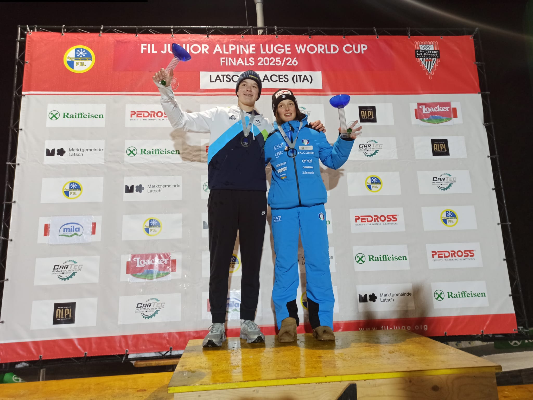 Latsch – Am Samstagabend wurde auf der Gumpfrei-Rodelbahn in Latsch/Laces (ITA) das Finale des FIL Alpin Rodel Juniorenweltcups ausgetragen. Mit Ziga Kralj (SLO) und Nina Castiglioni (ITA) gab es zum Abschluss zwei Favoritensiege.