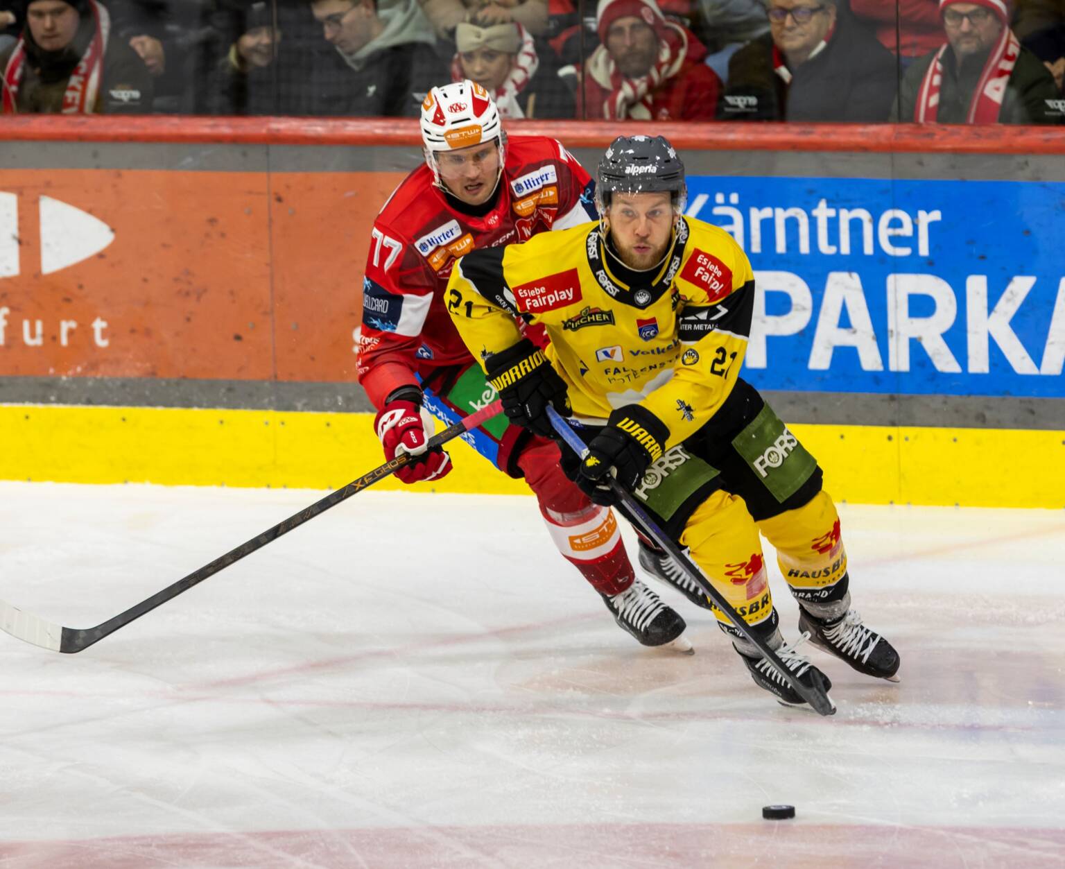 Im Schlussdrittel verwaltet der KAC seinen Vorsprung routiniert. Der HCP müht sich zwar um offensive Akzente, bringt Vorauer aber nur selten in Bedrängnis. Zwei Mal müssen die Wölfe in Unterzahl antreten, was sie mit viel Einsatz überstehen – doch die Kräfte schwinden merklich. So dauert es bis zur 56. Minute, bis der HCP den dringend benötigten Anschlusstreffer erzielen kann: Lobis zieht im linken Slot ab, Vorauer muss abprallen lassen und Frycklund drückt zum 3:2 ein. In den letzten beiden Spielminuten versuchen die Wölfe mit einem Mann mehr (für Pasquale) noch einmal alles und drücken mit Vehemenz auf den Ausgleichstreffer, doch die Scheibe will nicht ins Tor, und so bleiben die drei Punkte in Kärnten.