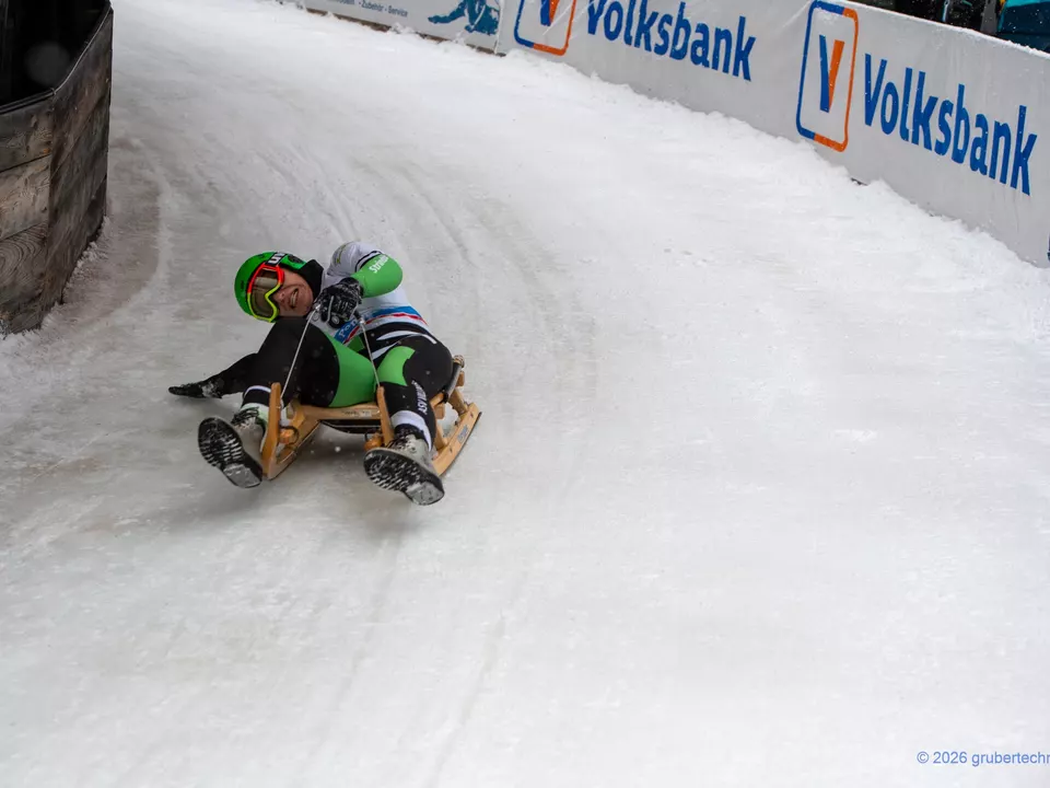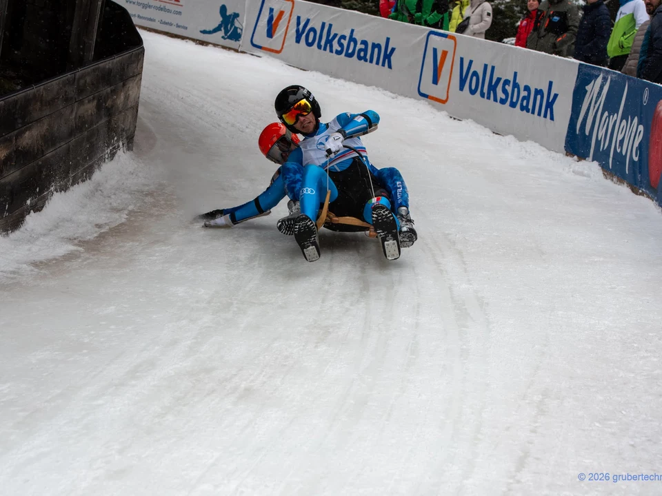 Im Doppelsitzer Bewerb war einmal mehr das Doppel Patrick Lambacher und Simon Schwienbacher nicht zu schlagen (Lambachers Brüder Matthias und Peter gewannen etwa genau zur selben Stunde bei der Europameisterschaft im Alpinrodeln die Goldmedaille). Auf Platz zwei folgte das neue Doppelteam der Saison Pircher/Gruber aus Tisens, welche vermutlich ohne eines gröberen Fehlers im ersten Lauf, dem siegreichen Duo sehr gefährlich geworden wären. Das Podest komplettierten mit Mair/Müller zwei weitere Doppelpartner aus Tisens.