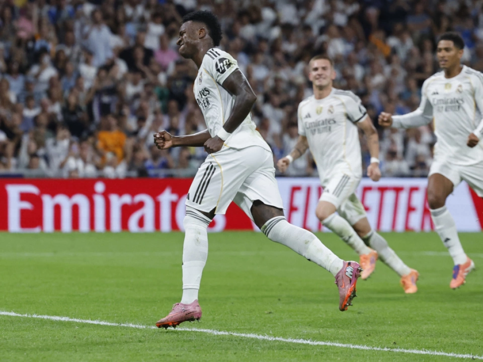 Real Madrid hat zumindest vorerst wieder Platz eins in Spaniens Fußballliga übernommen. Der Rekordchampion gewann am Samstag daheim gegen Villarreal 3:1 und liegt damit zwei Punkte vor dem FC Barcelona, der am Sonntag beim FC Sevilla gastiert. Vinicius Junior (47., 69./Elfer) und Kylian Mbappe (81.) erzielten die Tore für die Madrilenen, bei denen David Alaba nach seinem Champions-League-Einsatz am Dienstag dem genesenen Eder Militao weichen musste und auf der Bank saß.