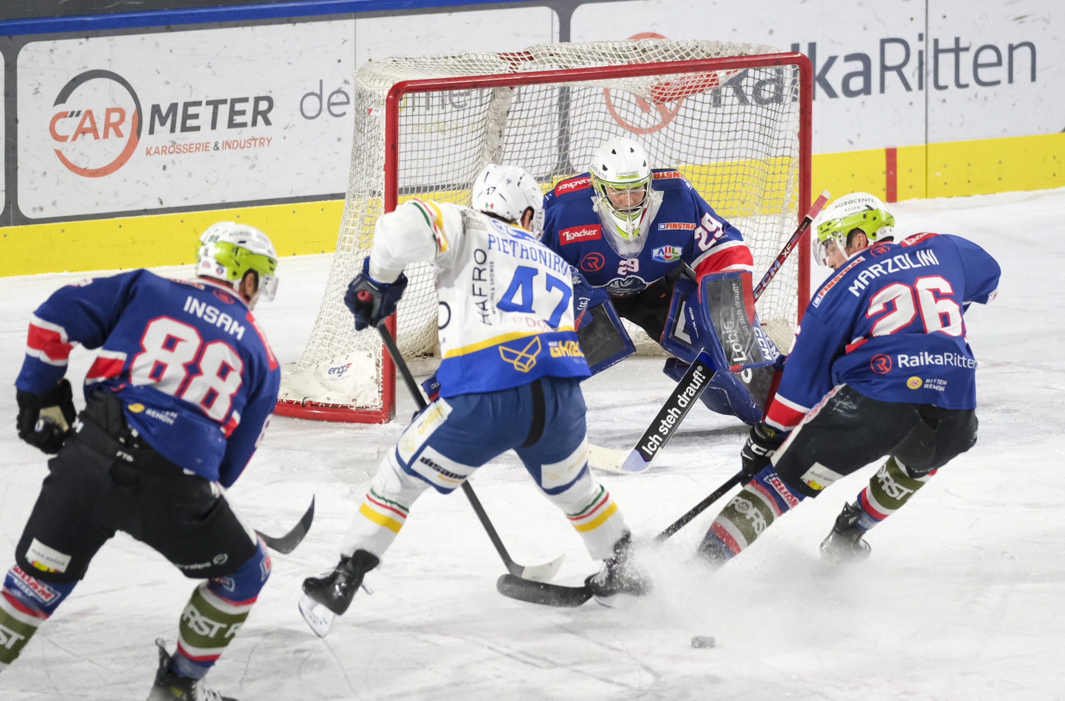 l 27 Sekunden gespielt, da stand es schon 2:0. Madsen zog von der blauen Linie ab und Kevin Fink fälschte den Puck vor Karjalainen mustergültig ins Tor ab (20.27). In den folgenden Minuten war Ritten stark im Forechecking und holte sich dadurch gute Chancen heraus, die aber keinen Treffer zur Folge hatten. Dann übernahm Cortina für einige Minuten die Spielregie und schoss aus allen Lagen, doch Furlong, dem die Sicht öfters genommen wurde, war stets am Posten. In der Schlussphase des Mitteldrittels wurden dann auch einige Strafen auf beiden Seiten ausgesprochen, die vorerst aber kein Tor hervorbrachten.