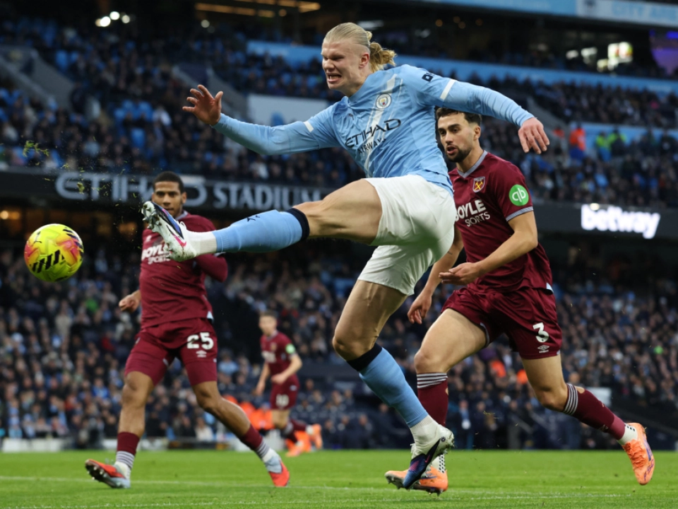 Manchester City hat im Kampf um die Tabellenspitze der englischen Fußball-Premier-League Konkurrent Arsenal vorgelegt. Die Elf von Trainer Pep Guardiola gewann am Samstag ihr Heimspiel gegen West Ham durch zwei Treffer von Erling Haaland und ein Tor von Tijjani Reijnders klar mit 3:0. City überholte damit Arsenal zumindest kurzzeitig und hat einen Zähler Vorsprung, die Londoner können sich die Führung am Abend aber beim Gastspiel in Liverpool gegen Everton zurückholen.