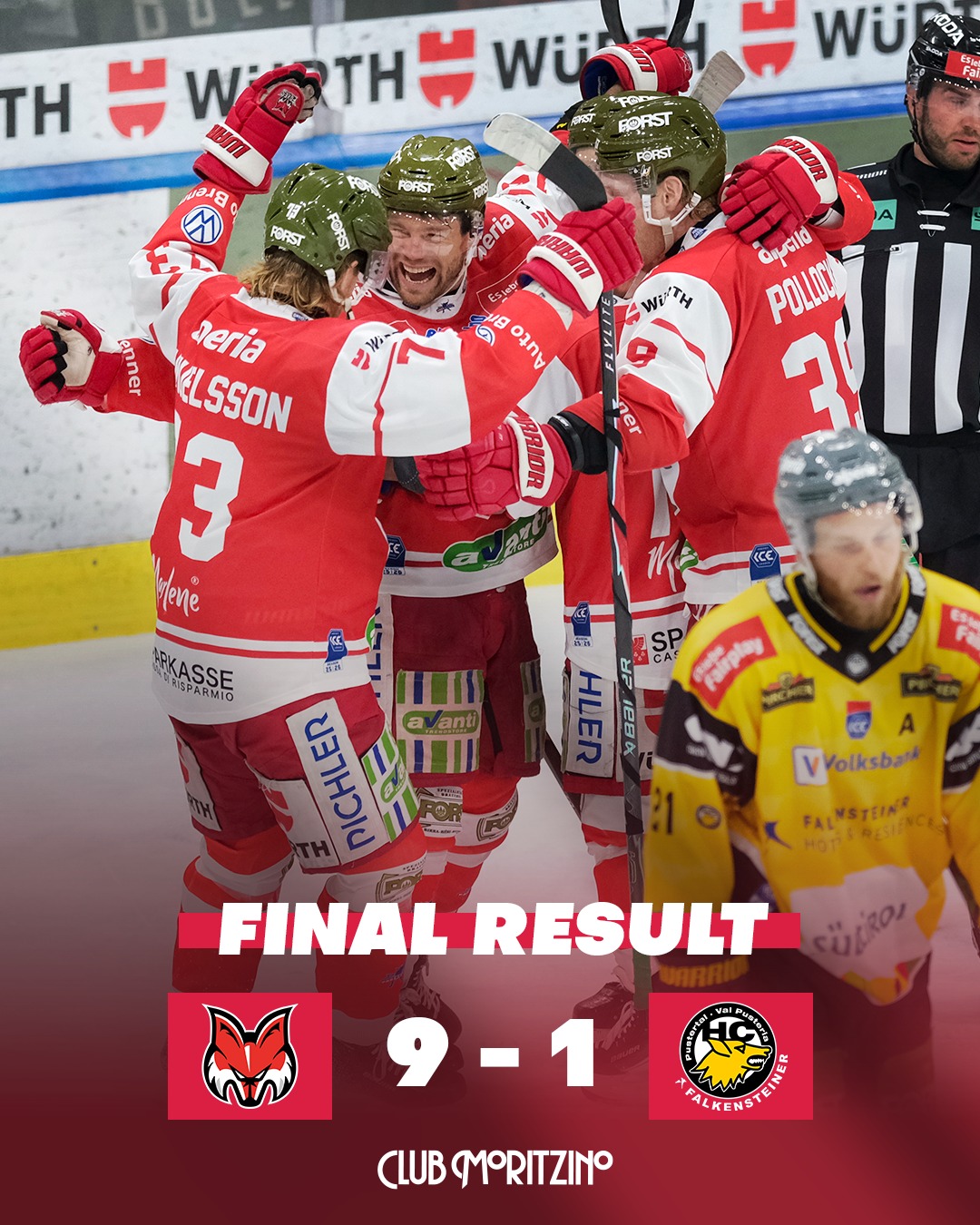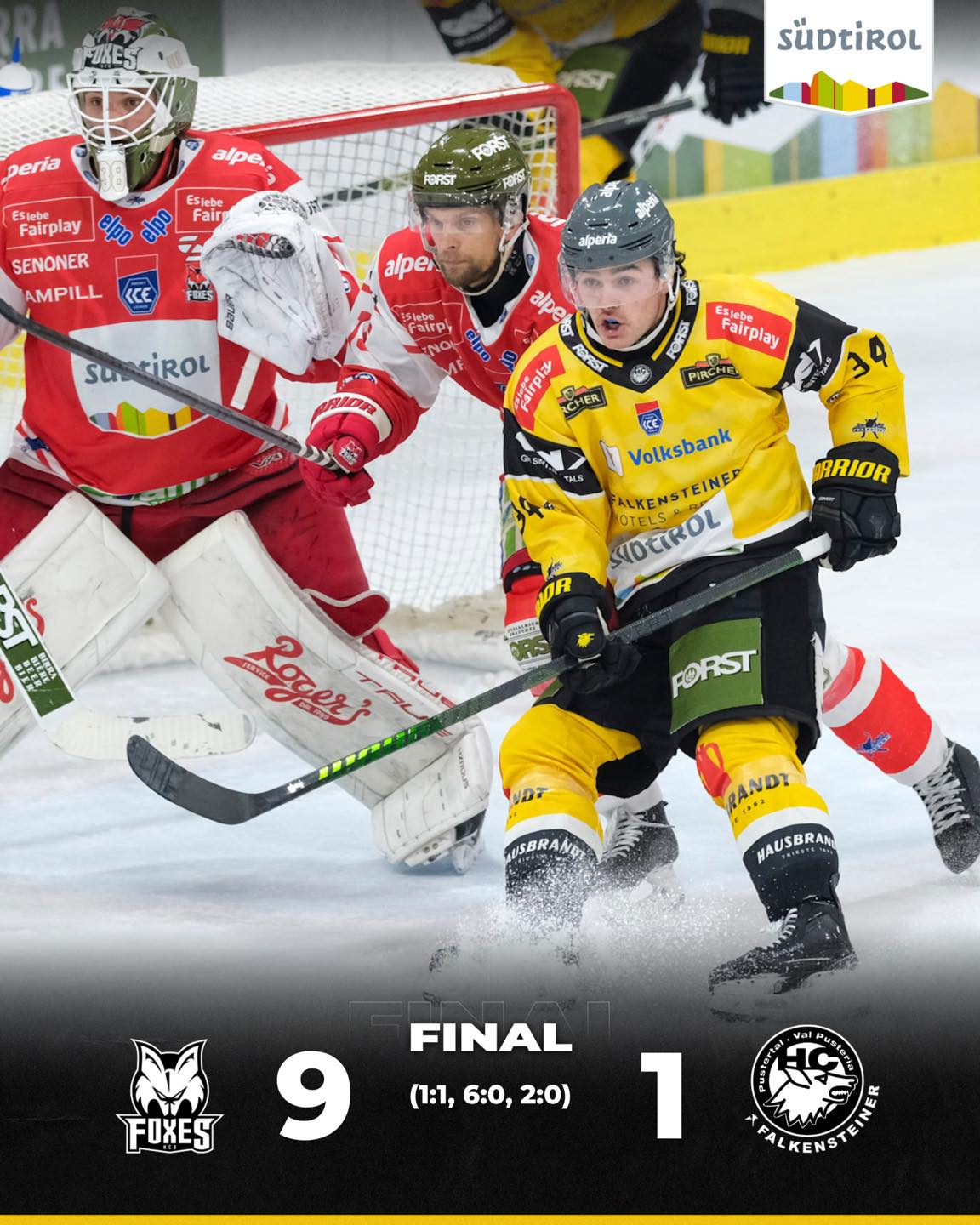 HCB Südtirol Alperia – HC Falkensteiner Pustertal 9:1 (1:1, 6:0, 2:0)