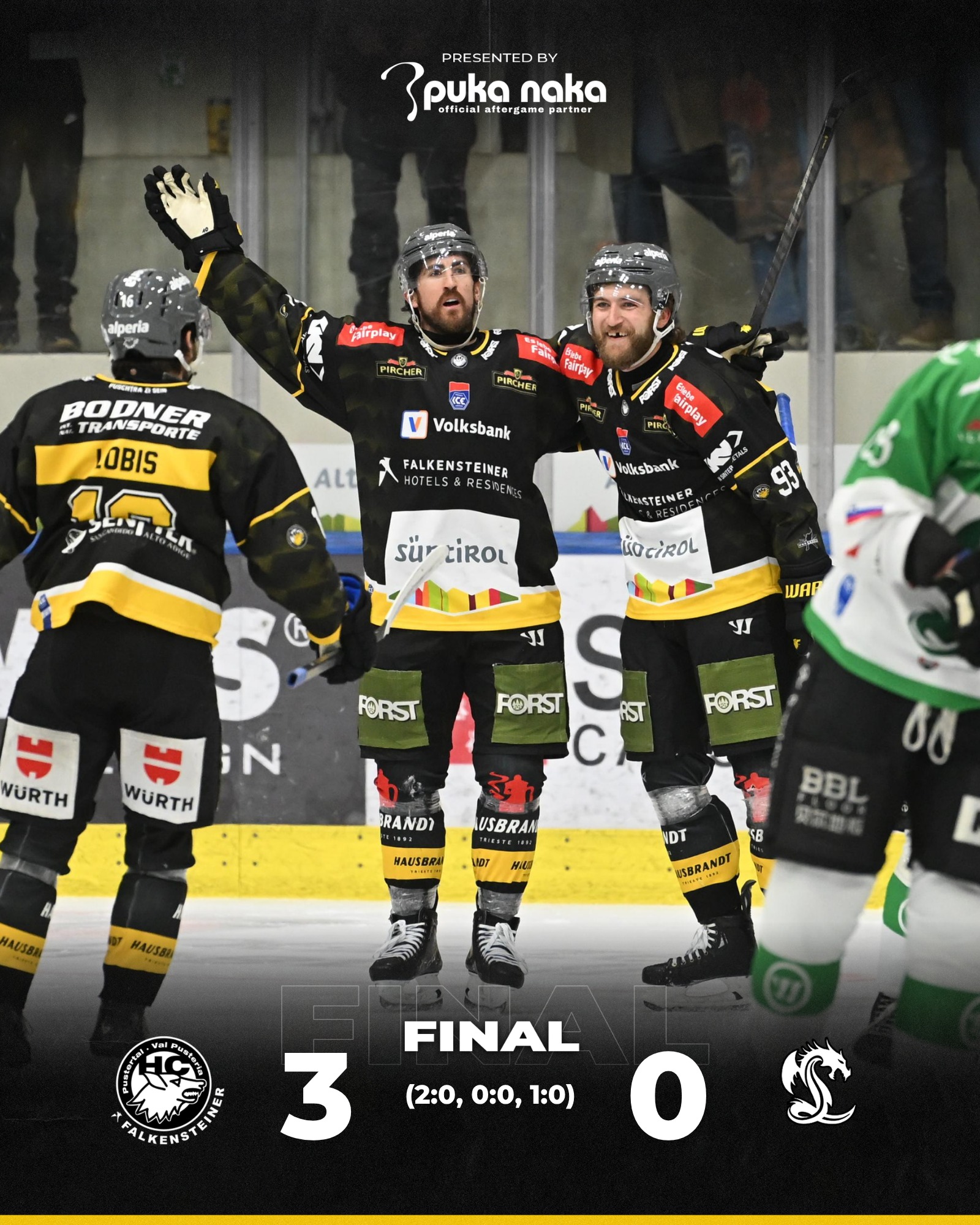 HC Falkensteiner Pustertal – Olimpija Ljubljana 3:0 (2:0, 0:0, 1:0)