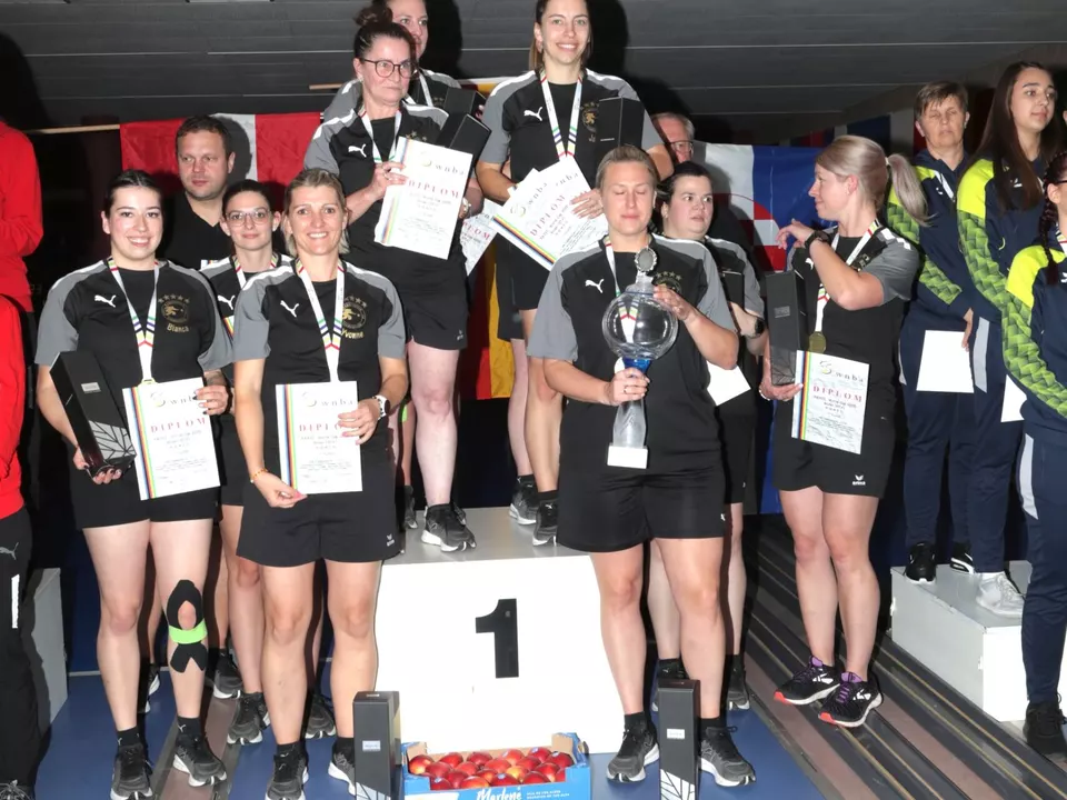Ganz ohne Erfolg fuhren Deutschlands Teams aber nicht nach Hause. Denn bei den Damen gab es ein an Spannung fast nicht zu überbietendes Finale zwischen den Österreicherinnen SK FWT Composites Neunkirchen und den Deutschen KV Liedolsheim zu sehen. Der Endstand lautete 4:4, weil Bianca Golla, Sandra Sellner, Yvonne Schneider und Saskia Seitz/Vanessa Rauch (Auswechslung bei Wurf 91) für Liedolsheim punkteten, Boglarka Hari (mit der Tagesbestleistung von 645 Kegeln) sowie Fiona Steiner/Mia-Laura Baumgartner (Auswechslung bei Wurf 91) für Neunkirchen anschrieben und die Österreicherinnen mit 3506:3488 Kegeln das bessere Gesamtergebnis hatten und so die letzten beiden Matchpunkte zugeschrieben bekamen. Es mussten also die Sätze entscheiden. Und dort lag Liedolsheim mit 14,5:9,5 Punkten in Führung und holte sich den ersten Weltpokal der Vereinsgeschichte.