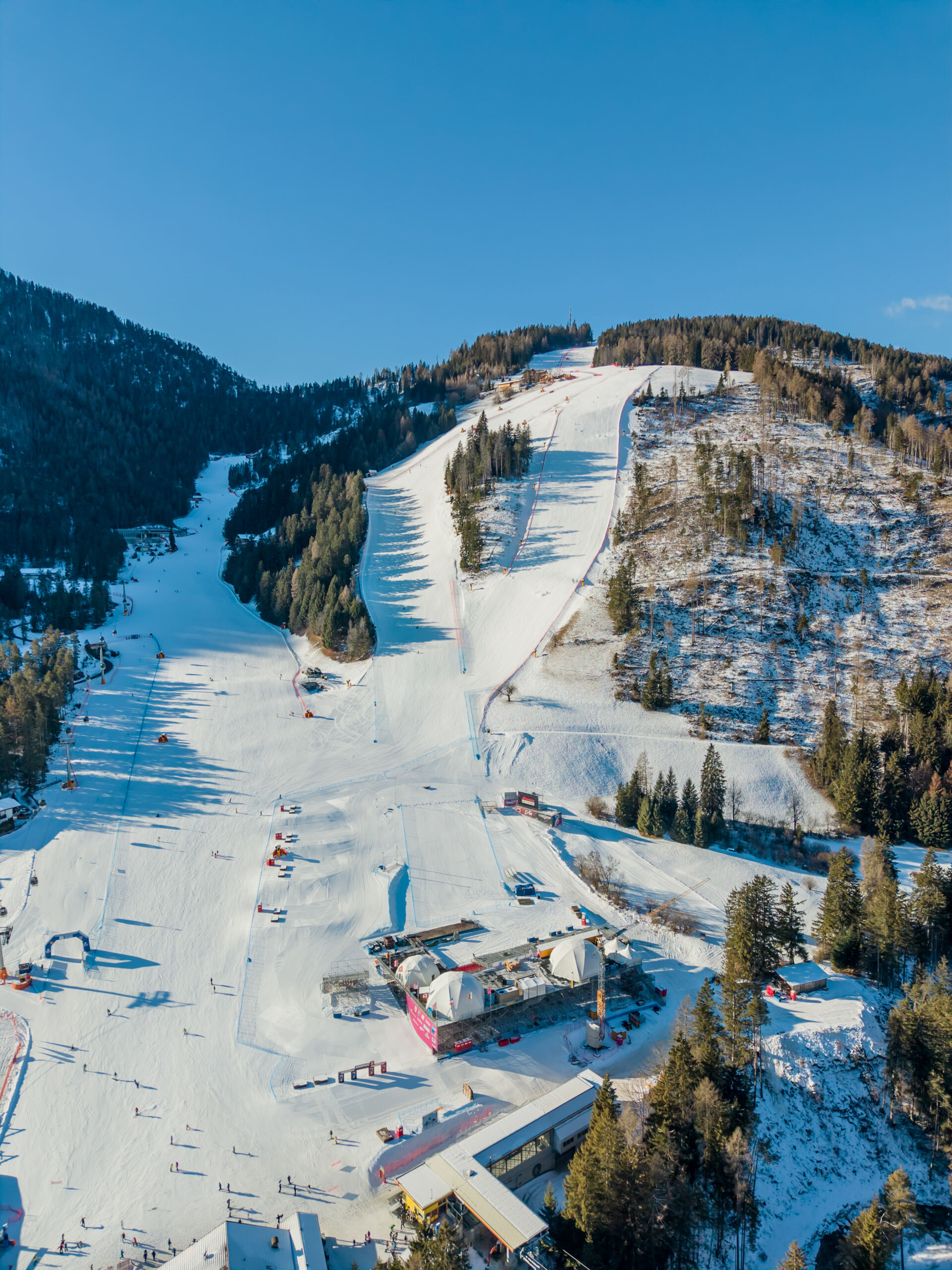 Verlangte die Rennpiste am Kronplatz bereits jetzt vollen Einsatz von den Rennläuferinnen, wird ab 2026 das Letzte gefordert, um ins Ziel zu kommen. Seit Dreikönig ist Pistenchef Daniele Clara mit seinem Team am Werk, um die Piste vorzubereiten. „Der Schnee ist top, weil wir sehr viele bitterkalte Tage hatten. Das wirkt sich auf die Tiefenstruktur des Schnees aus und wir gehen wieder von optimalen Rennverhältnissen am 20. Jänner aus. Bisher waren die Athletinnen immer sehr zufrieden mit unserer Arbeit“ so der Pistenchef. Inzwischen hat die FIS die traditionelle Schneekontrolle durchgeführt und grünes Licht für das Weltcuprennen am Kronplatz gegeben. Die „benetzte“ Piste wird jetzt noch einige Tage lang dem allgemeinen Skipublikum zur Verfügung stehen (täglich bis 10 h werden jedoch verschiedene Skistars auf der ERTA trainieren). 2-3 Tage vor dem Rennen wird dann die Rennpiste ERTA mit Wassereinspritzung finalisiert und auf Rennmodus gebracht.
