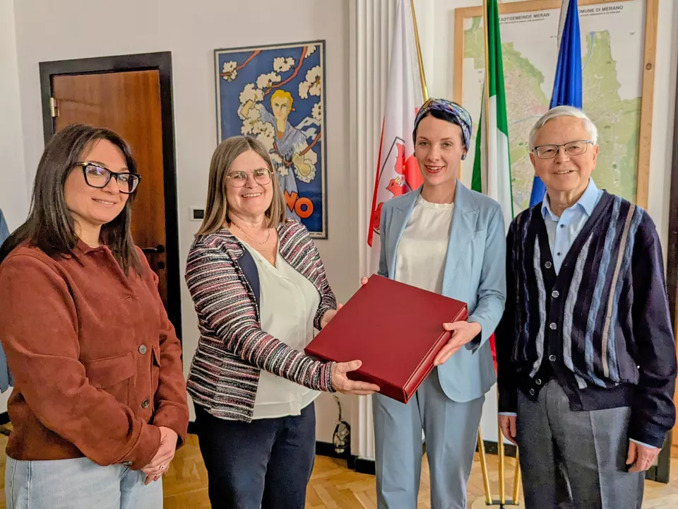 Meran – Heute Nachmittag empfingen Bürgermeisterin Katharina Zeller und Kulturreferentin Antonella Costanzo Manfred und Sieglinde Innerhofer im Rathaus, um sich für die wertvolle Spende an das Stadtarchiv zu bedanken.