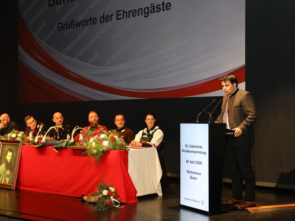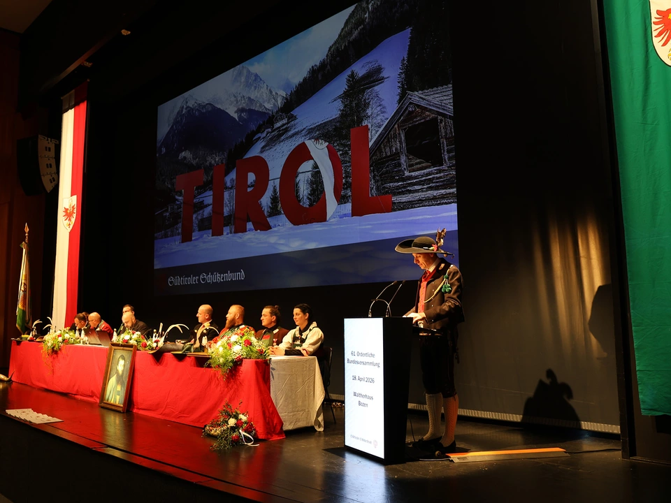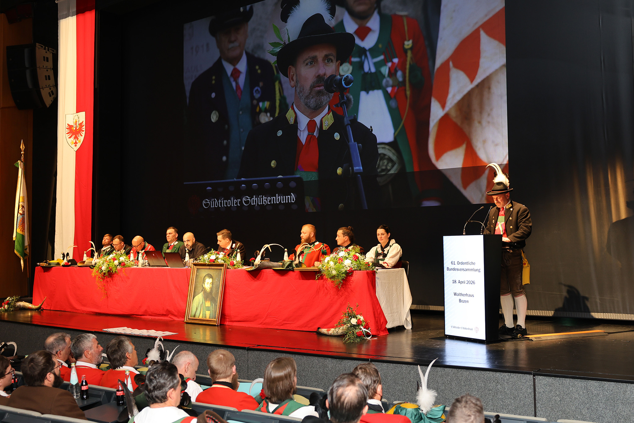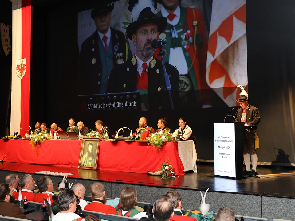 Am Samstag, den 18. April 2026, hielt der Südtiroler Schützenbund im Waltherhaus seine 61. Ordentliche Bundesversammlung ab. Im Mittelpunkt standen die politische Lage Südtirols, der Schutz der Autonomie, die Bedeutung des Ehrenamtes sowie der Rückblick auf ein intensives Vereinsjahr.