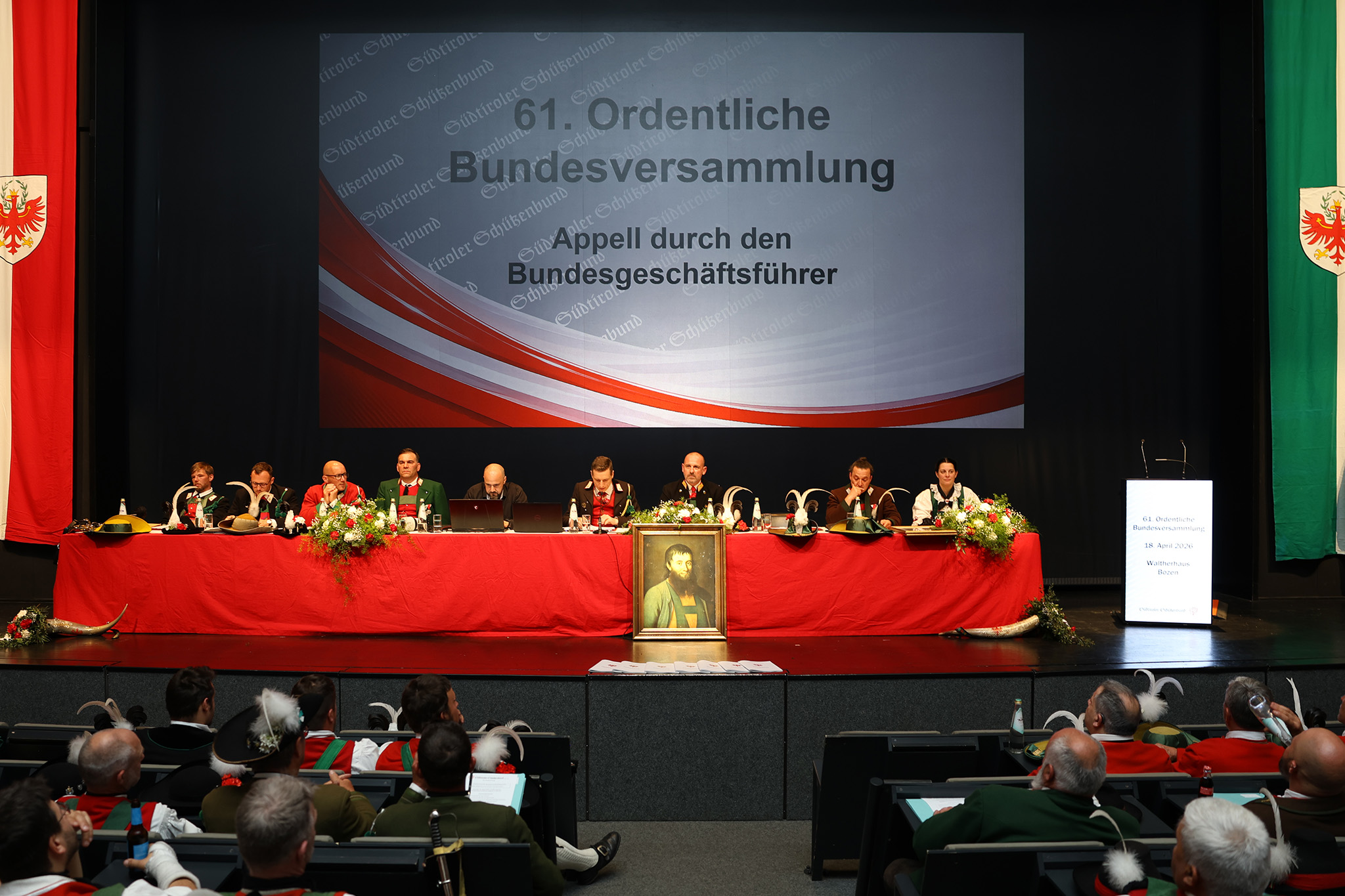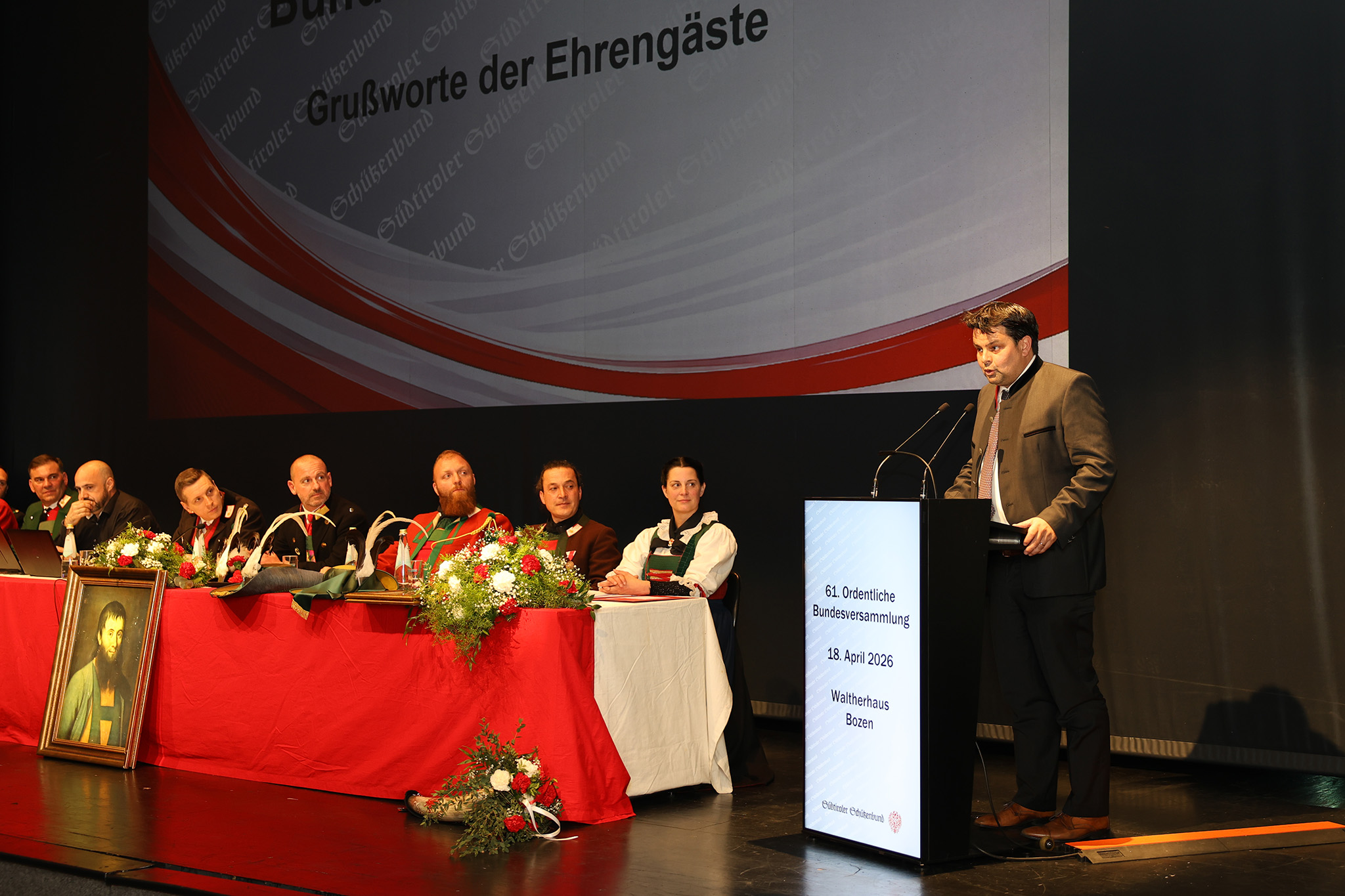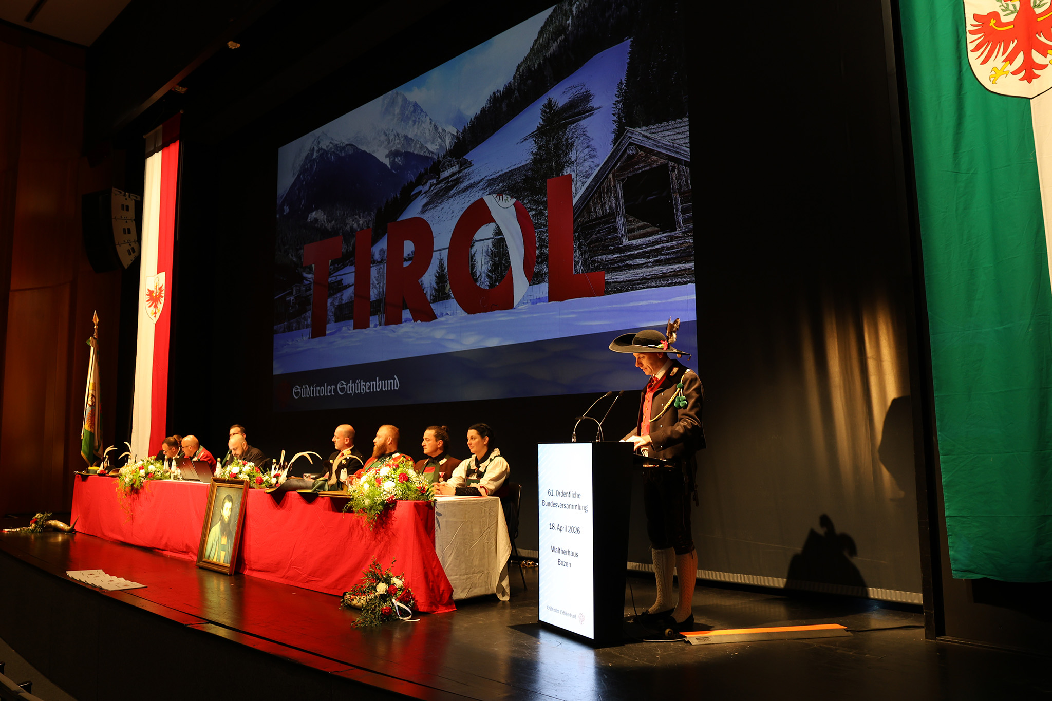 Am Samstag, den 18. April 2026, hielt der Südtiroler Schützenbund im Waltherhaus seine 61. Ordentliche Bundesversammlung ab. Im Mittelpunkt standen die politische Lage Südtirols, der Schutz der Autonomie, die Bedeutung des Ehrenamtes sowie der Rückblick auf ein intensives Vereinsjahr.