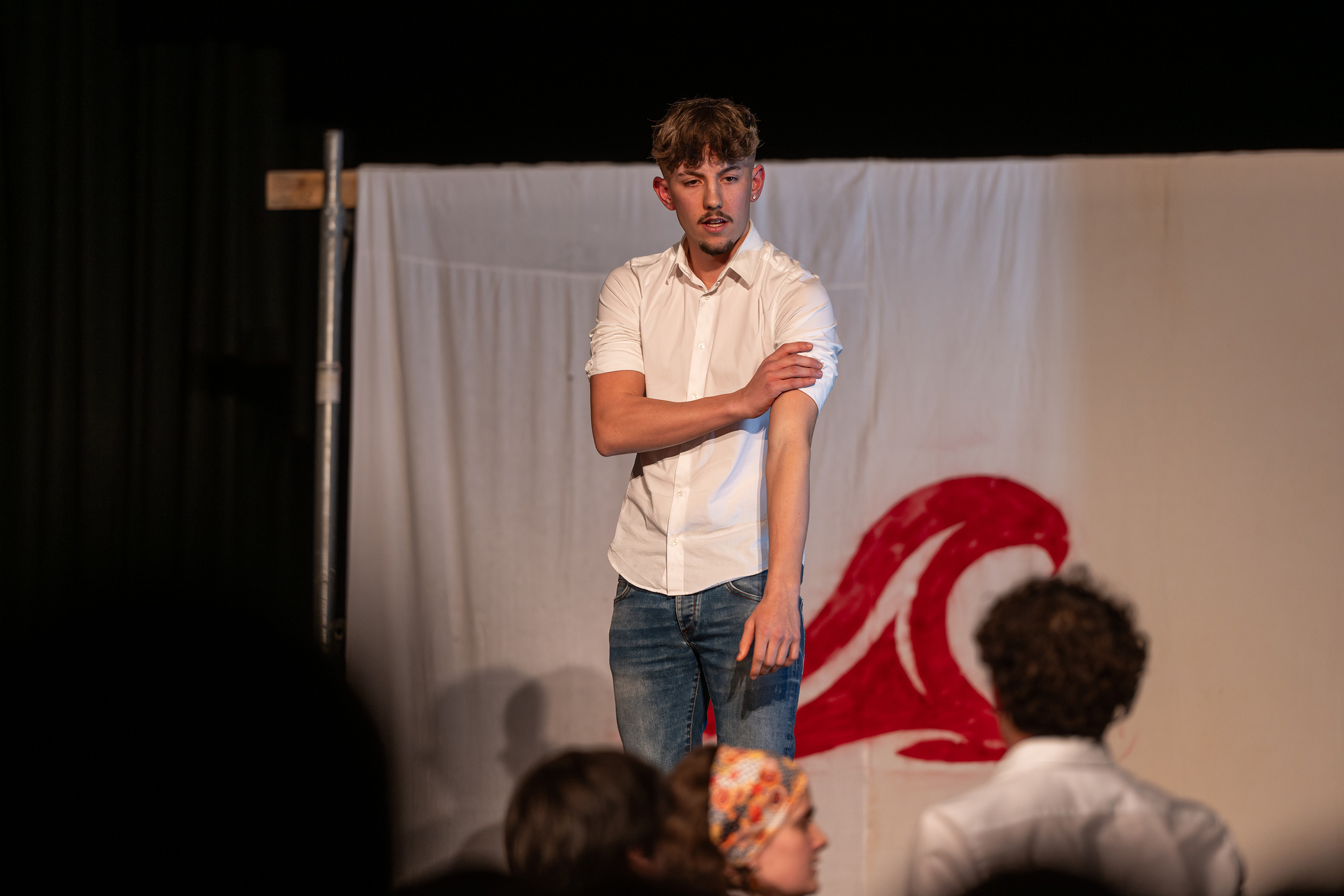 Brixen – Am vergangenen Sonntag fand im Parzivalsaal des Vinzentinums die Premiere des Theaterstücks „Die Welle“ statt. Die Maturantinnen und Maturanten des Vinzentinums bringen traditionell jedes Jahr statt eines Maturaballs ein Theaterstück auf die Bühne. Heuer entschieden sie sich für ein fesselndes Stück über Macht und Manipulation, das zeigen soll, wie schnell man sich von Ideologien beeinflussen lassen kann.